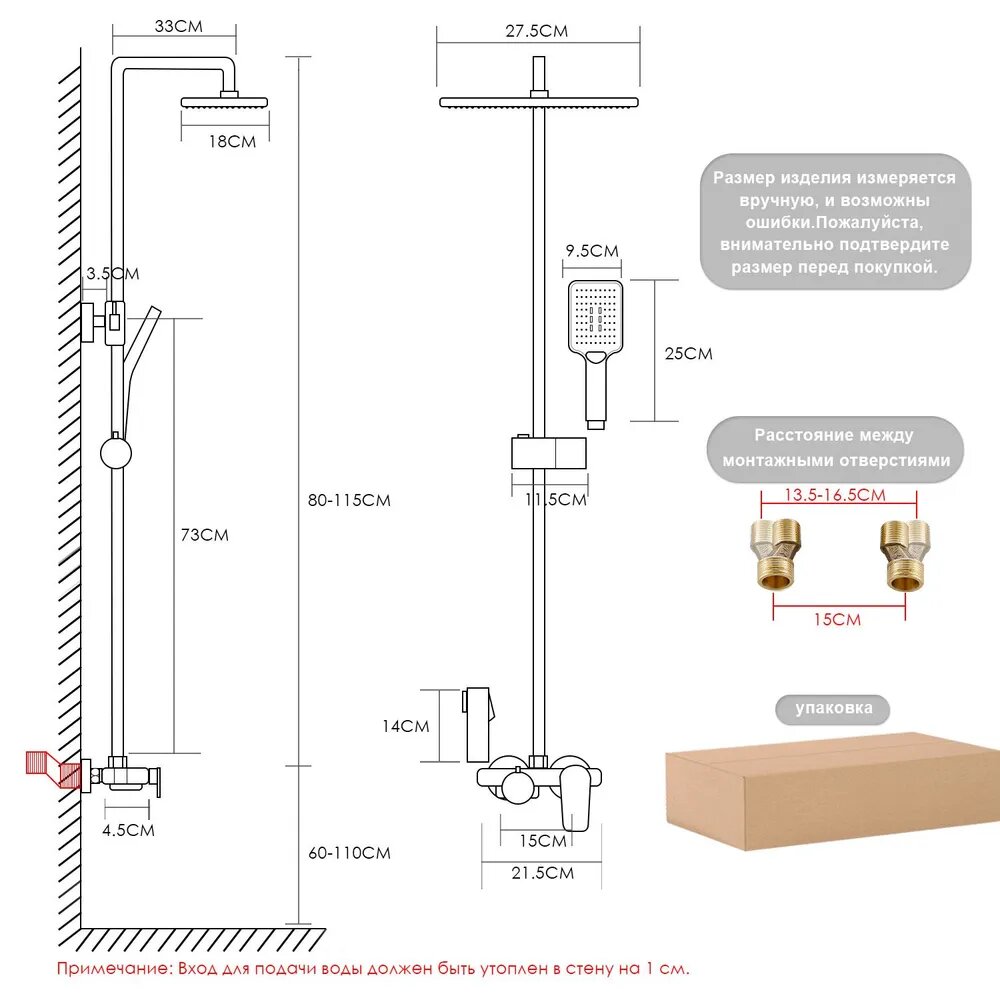 Душевая система с тропическим душем, набор для ванной комнаты, шланг для душа,4 режима, черный