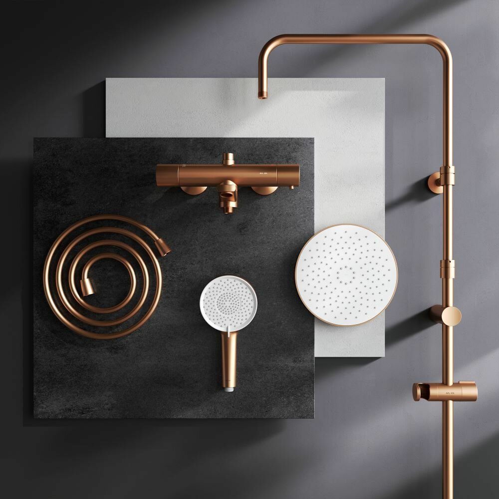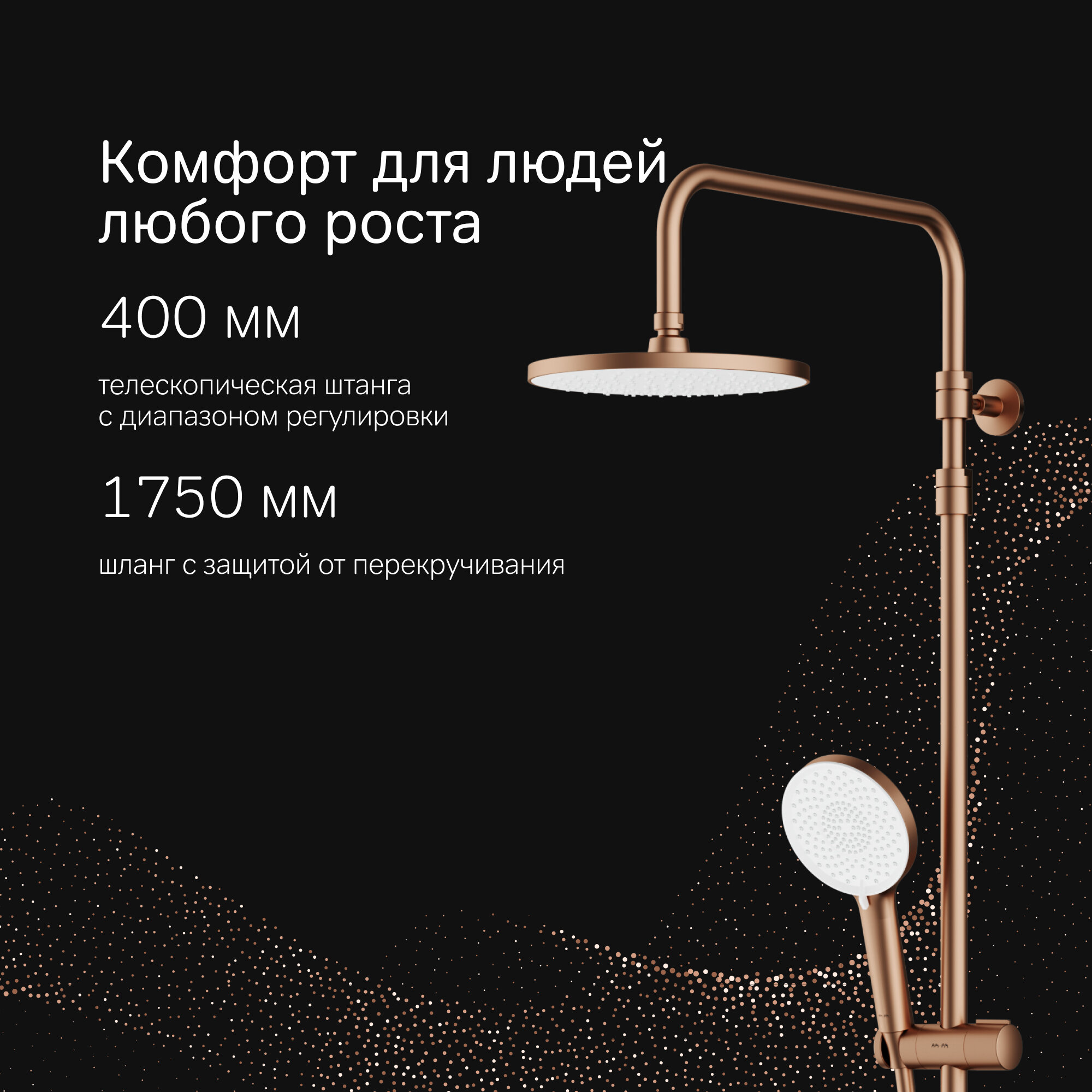 Душевая система AM.PM X-Joy смеситель для душа, штанга, верхний душ, ручной душ, розовое золото