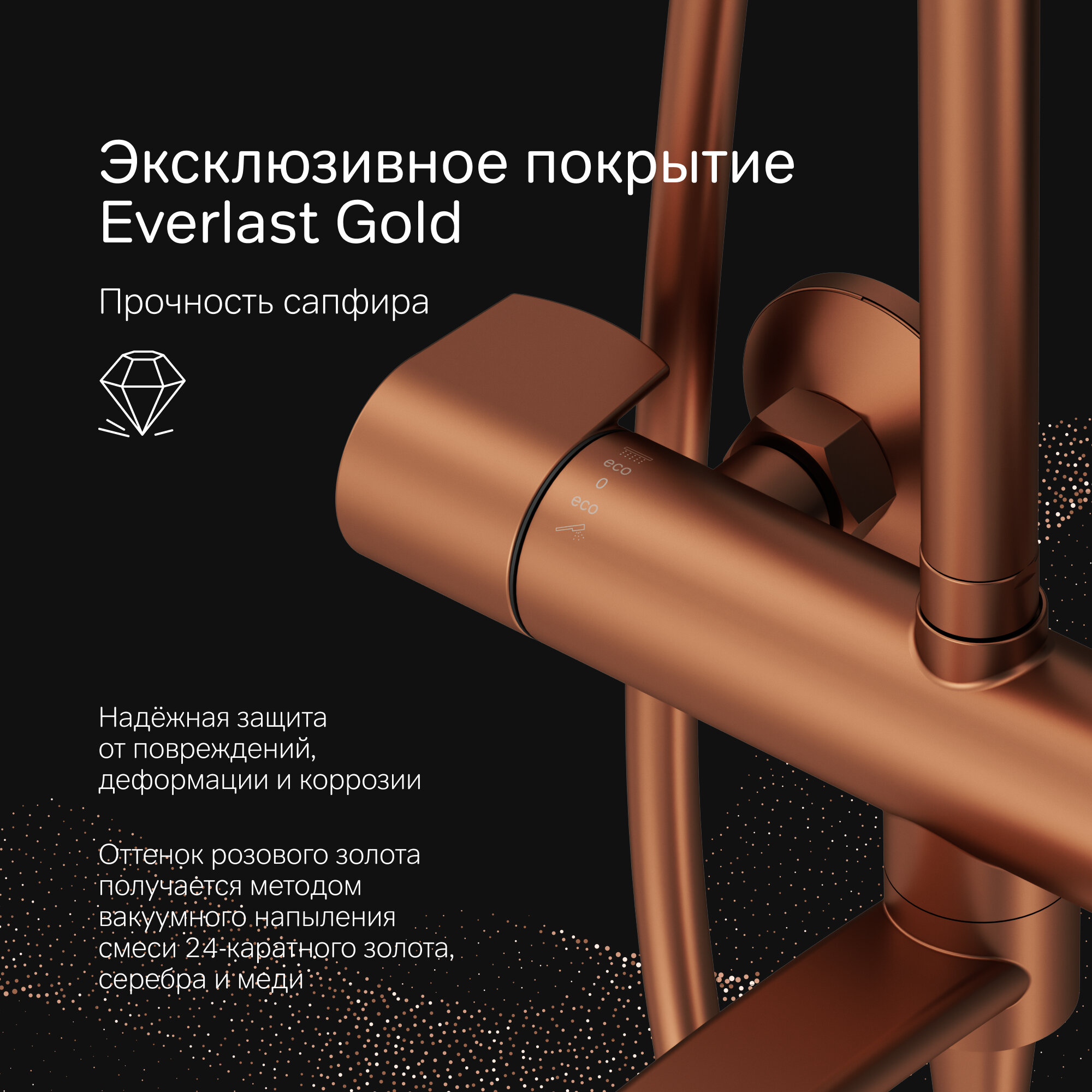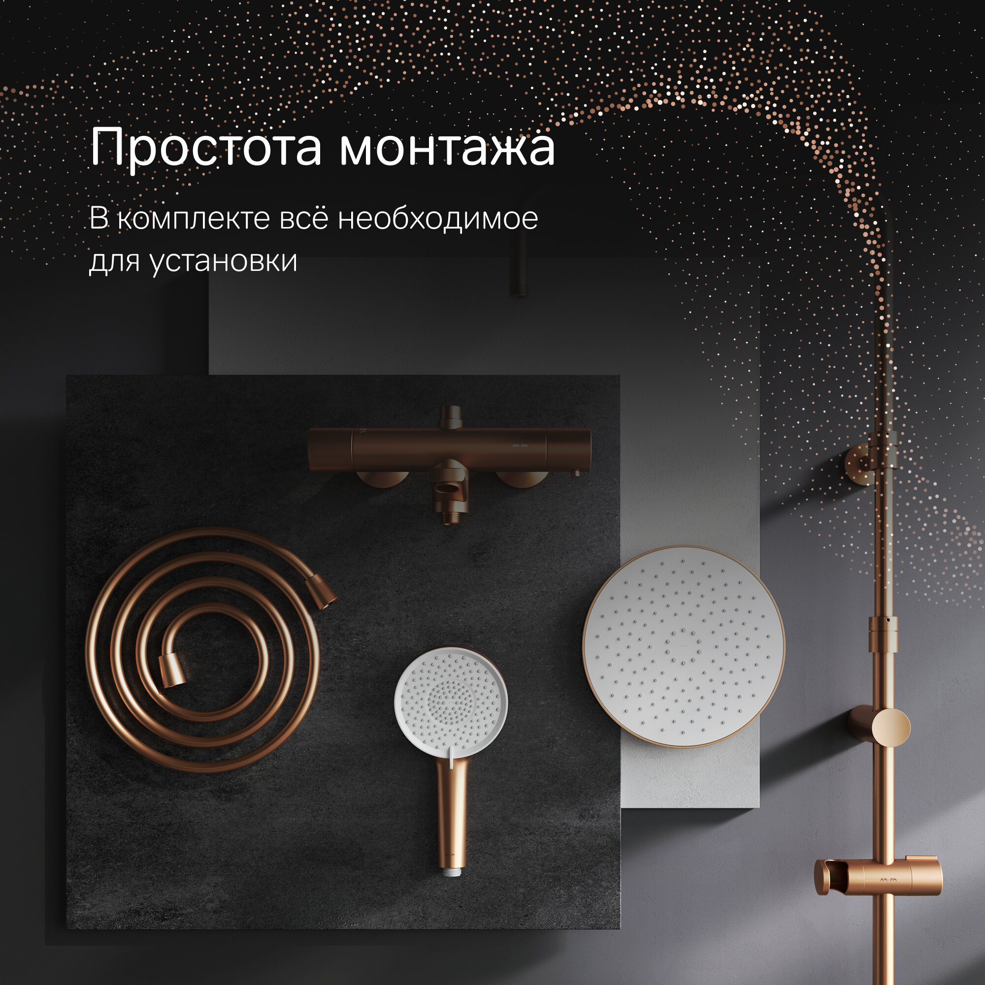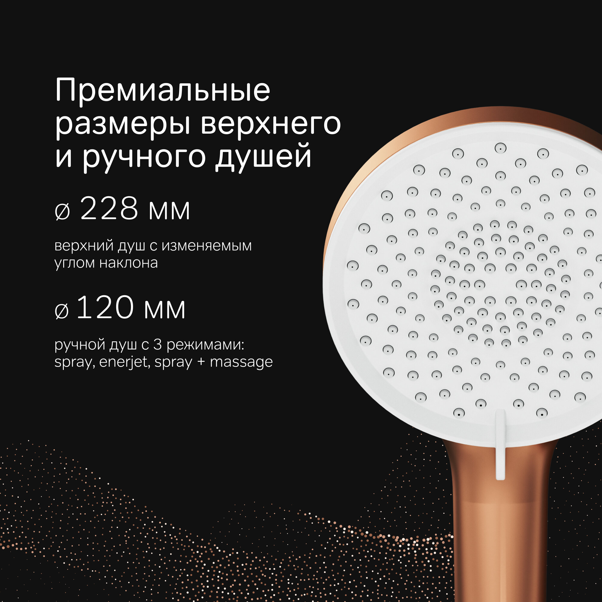 Душевая система с тропическим душем и смесителем AM.PM X-Joy розовое золото с изливом, с краном для ванны интересное: