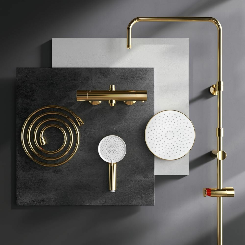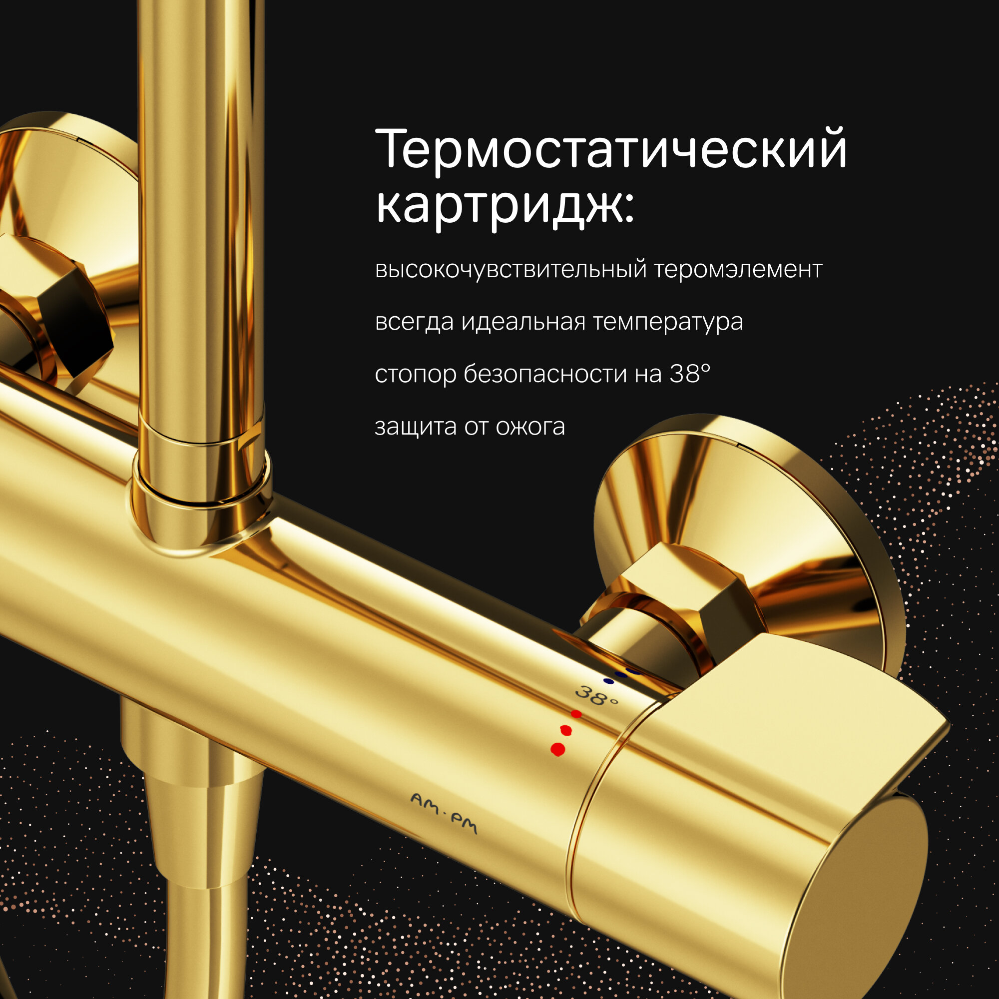 Душевая система AM.PM X-Joy смеситель для душа, штанга, верхний душ, ручной душ, золото интересное: