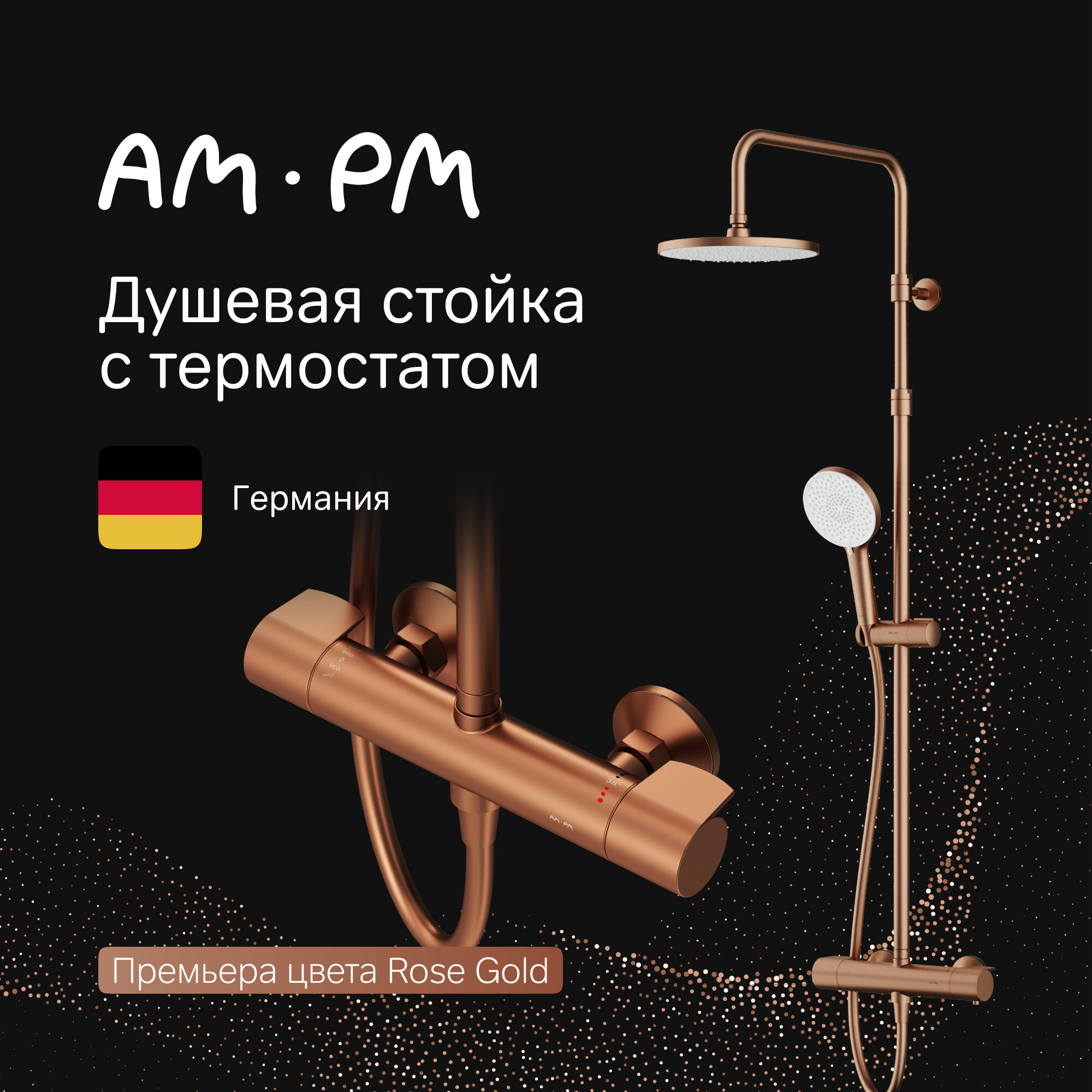 Душевая система AM.PM X-Joy смеситель для душа, штанга, верхний душ, ручной душ, розовое золото интересное: