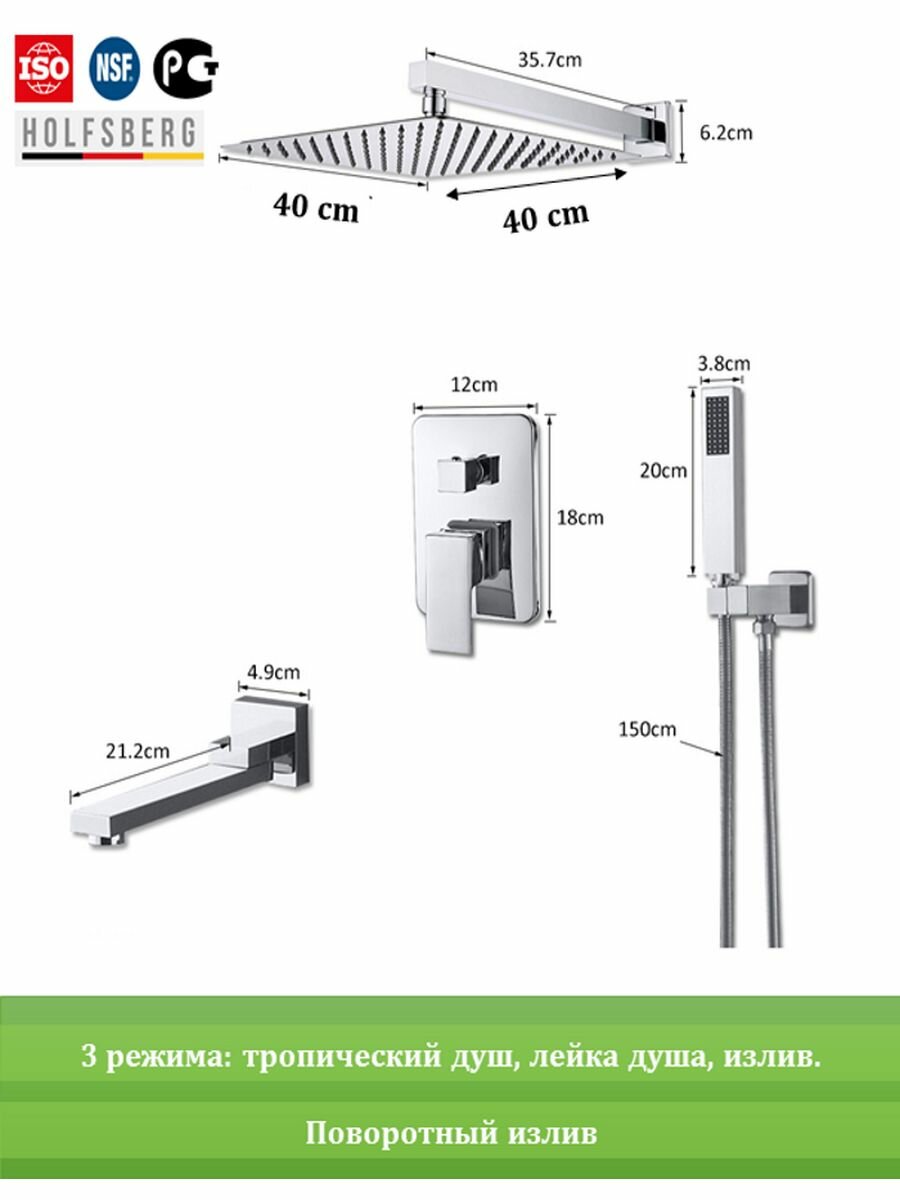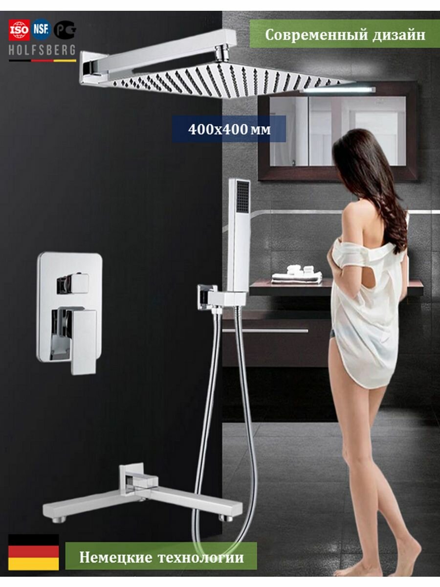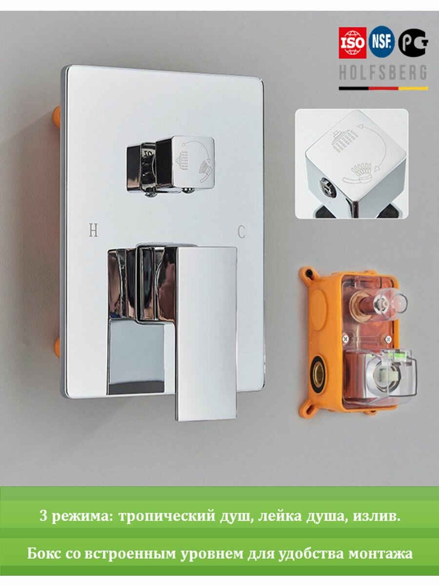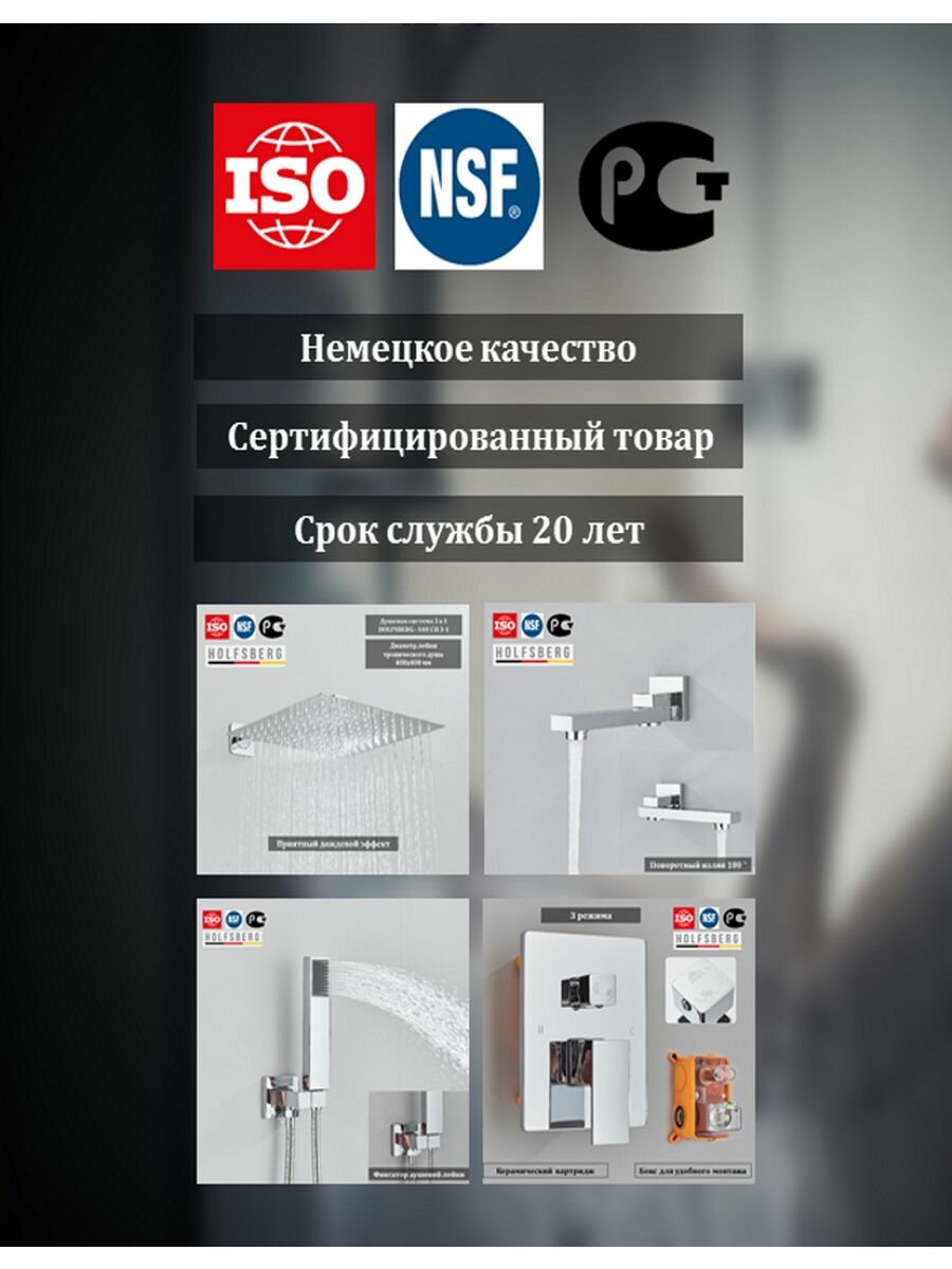 Душевая система скрытого монтажа хром 40х40 см HOLFSBERG S40 интересное: