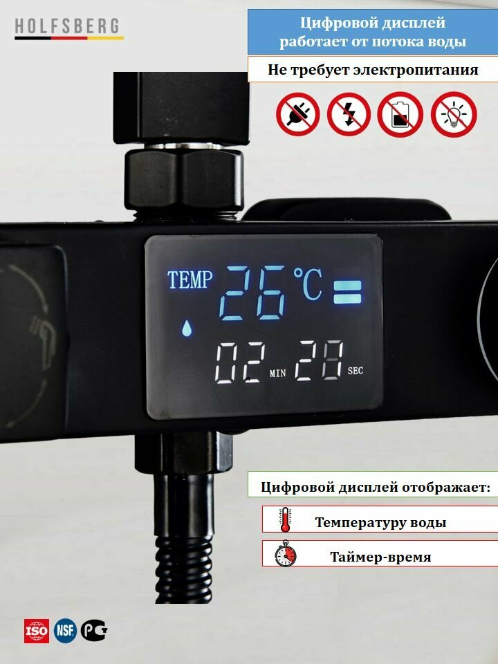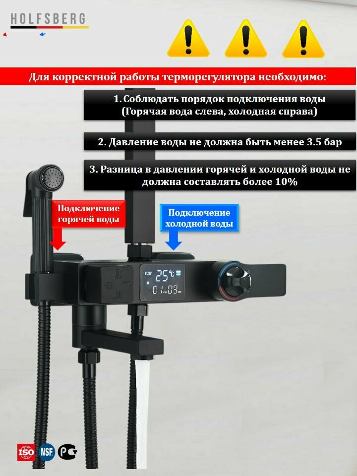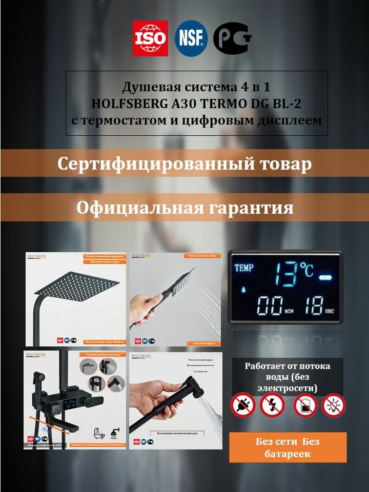 Душевая система с термостатом и тропическим душем хром HOLFSBERG интересное: