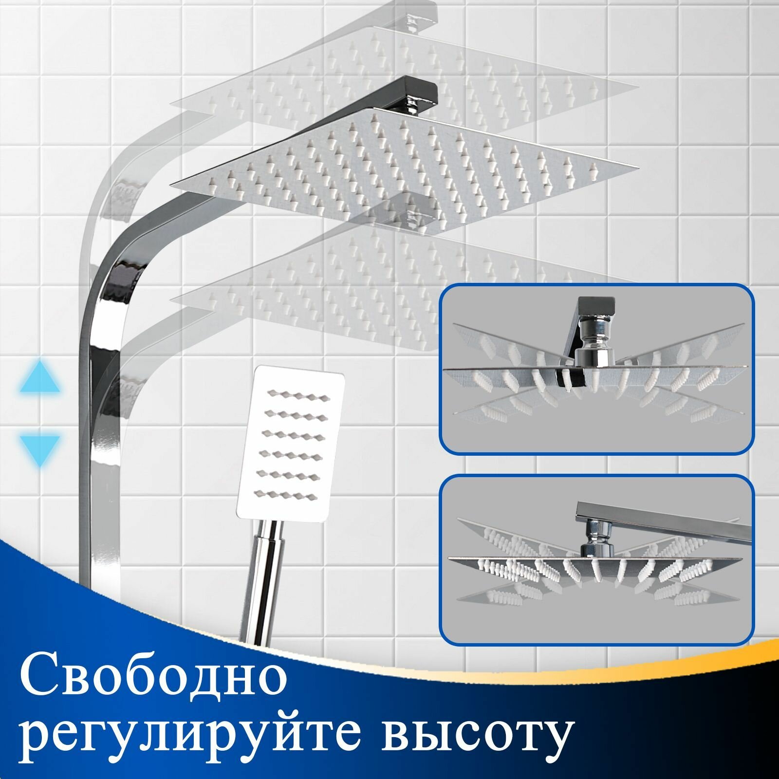 Душевая система, смеситель для ванны раковины, с тропическим душем и смесителем ,3 В 1, Плюс штанга для душа, Серебро