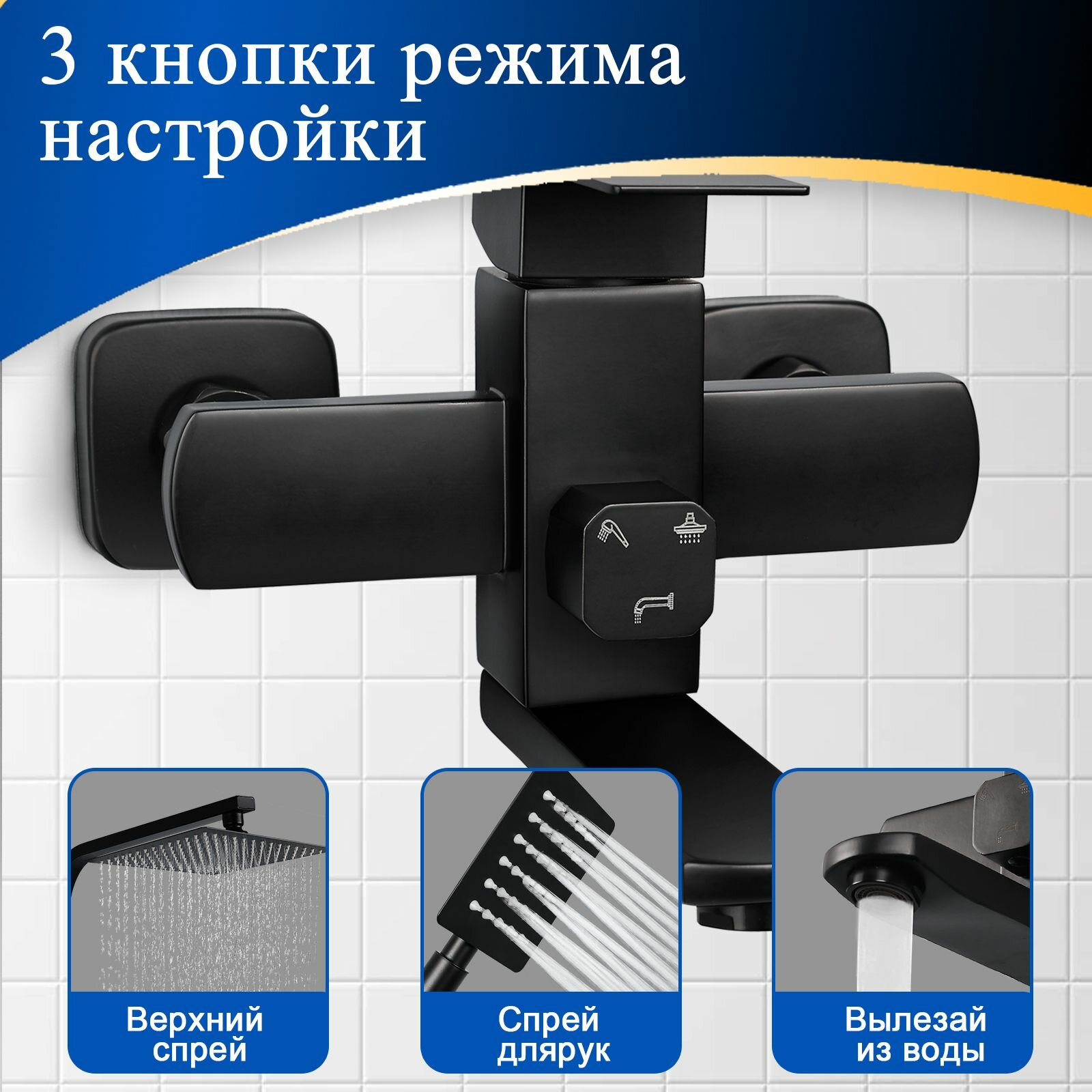 Душевая система с тропическим душем, и смеситель для ванны , Плюс штанга для душа, 3 В 1, черный