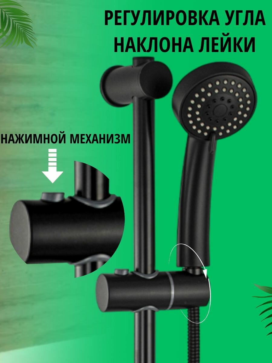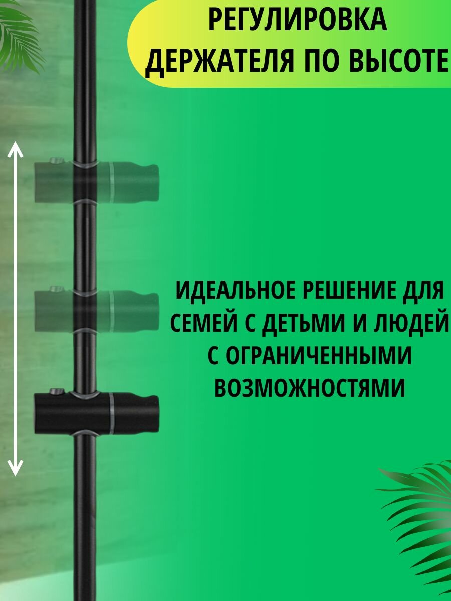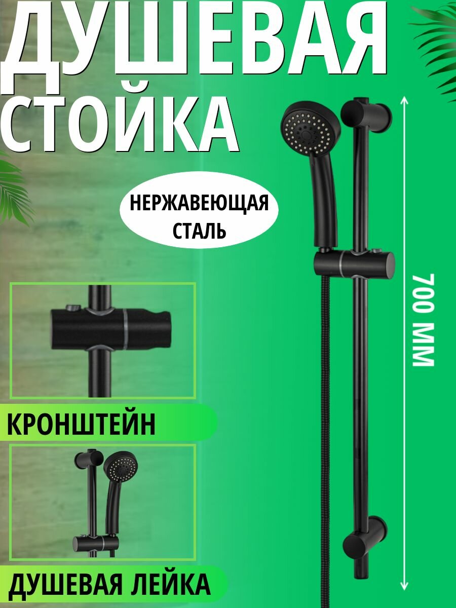 Стойка душевая, с душевым шлангом и лейкой, с нажимным фиксатором, из нержавеющей стали марки 304, цвет черный. интересное: