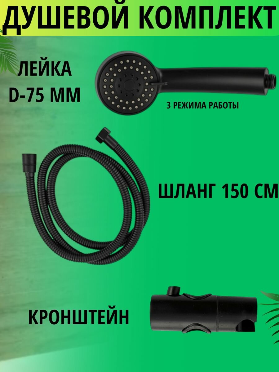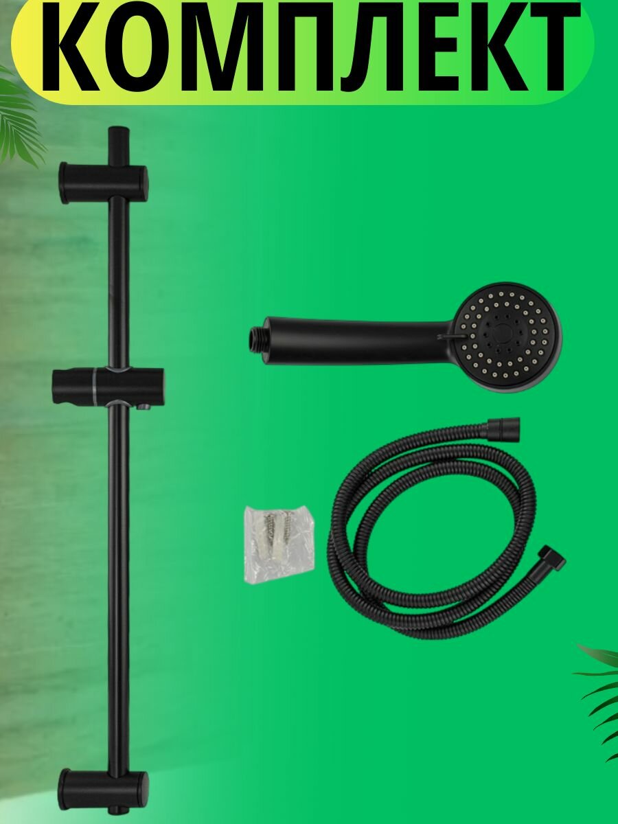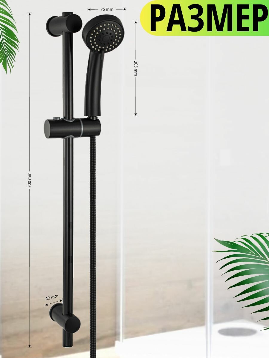 Стойка душевая, с душевым шлангом и лейкой, с нажимным фиксатором, из нержавеющей стали марки 304, цвет черный. интересное: