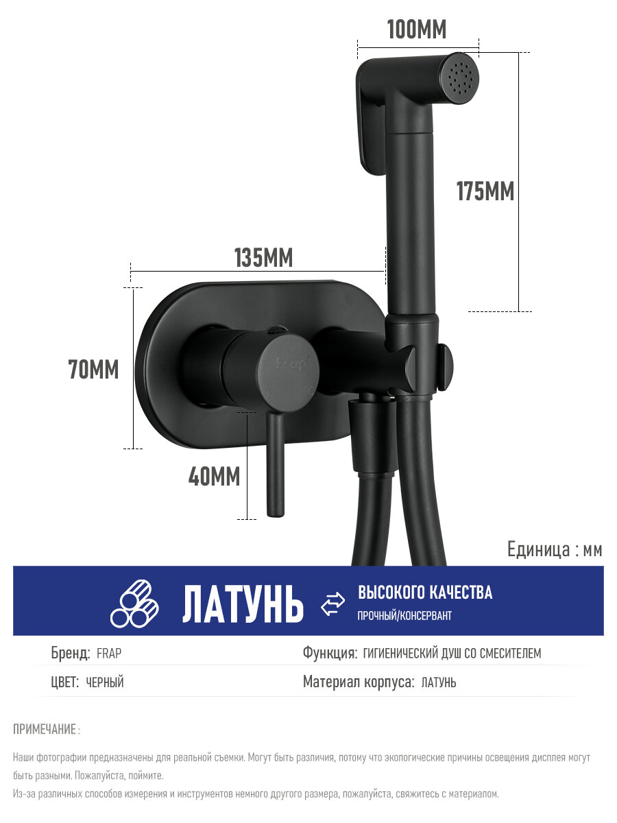 Гигиенический душ Смеситель для биде с гигиеническим душем Frap Y50060A черный интересное: