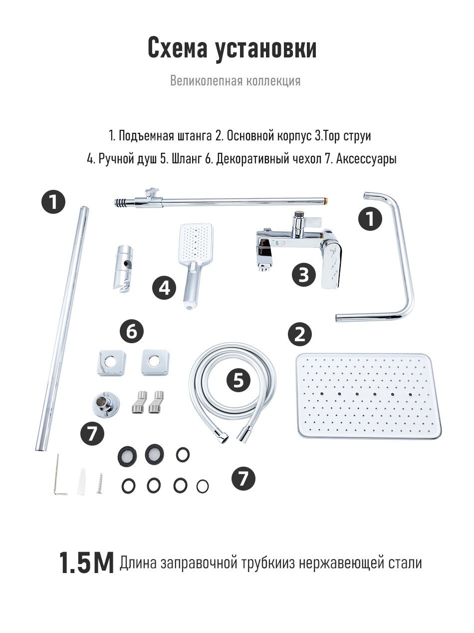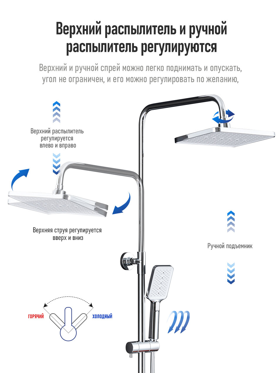 Душевая система Frap F2486 с тропическим душем со смесителем хром латунь интересное: