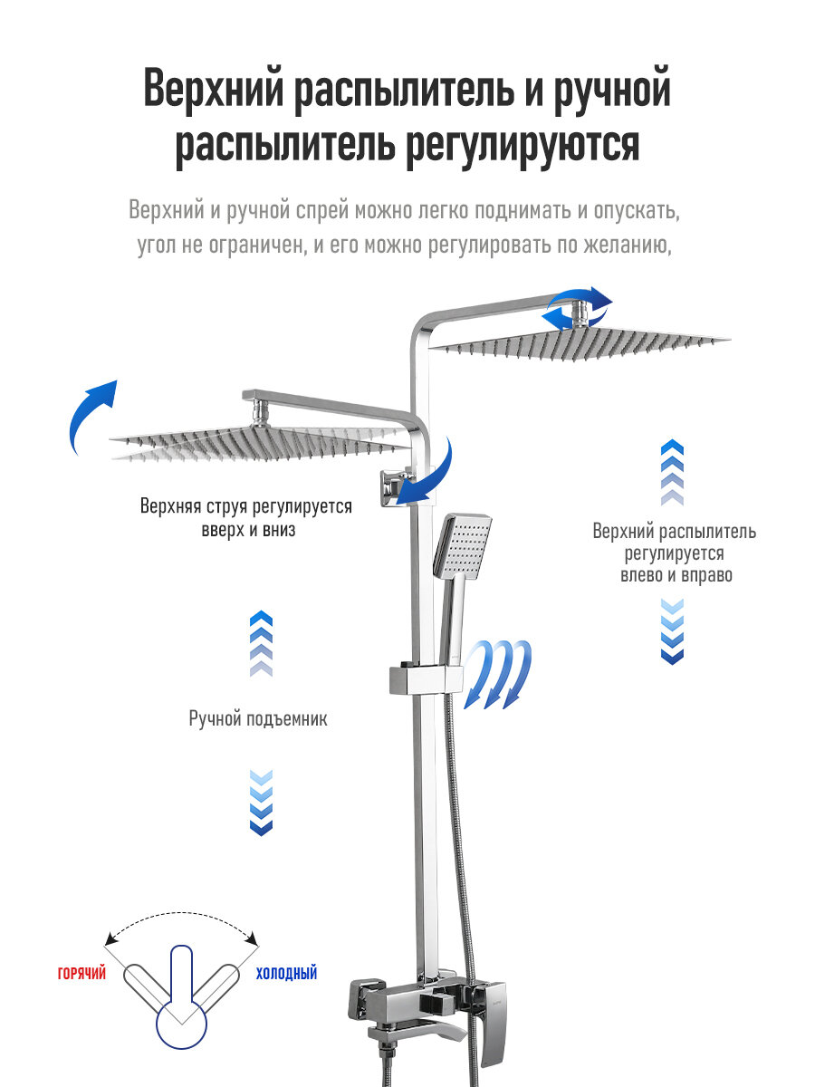 Душевая система с тропическим душем тропический душ со смесителем Gappo G2407-11 хром латунь интересное: