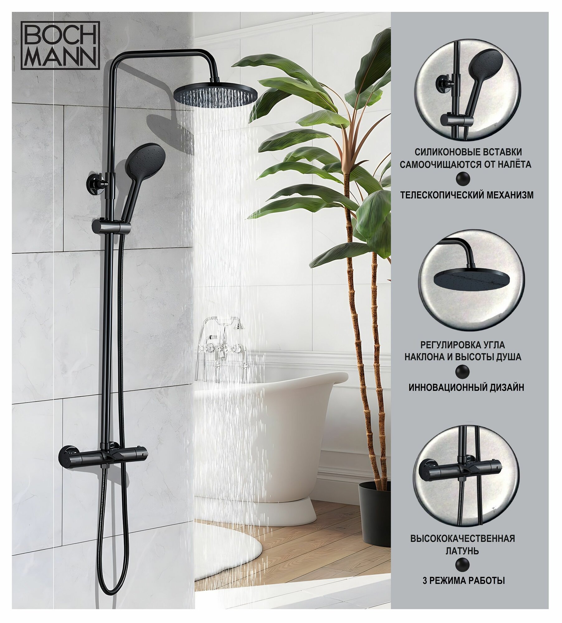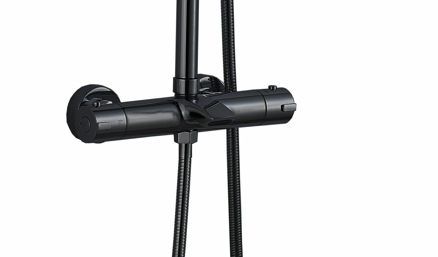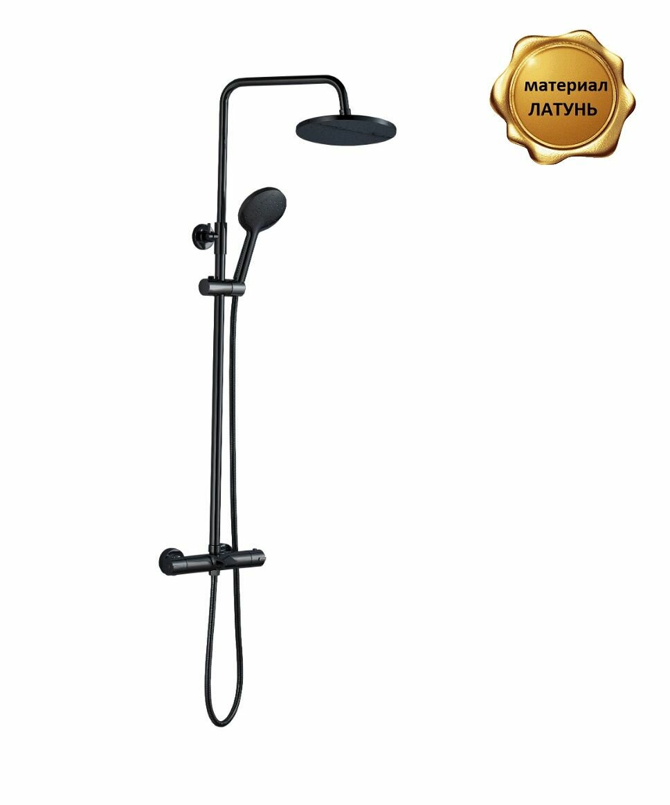 Душевая система из латуни BOCH MANN OGLIO B TS (BM9649), с термостатом, черный, с тропическим душем интересное: