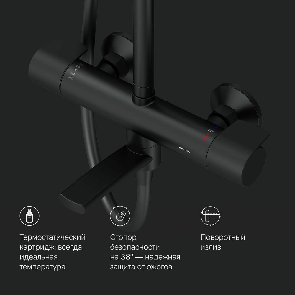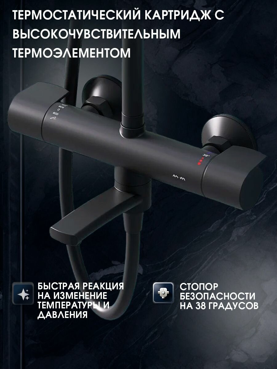 Душевая система с тропическим душем AM.PM Brava черный матовый, смеситель с термостатом, поворотный излив интересное: