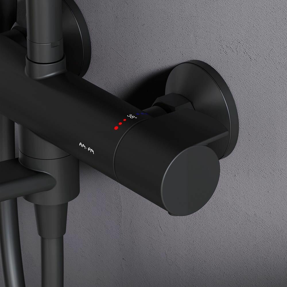 Купить Душевая система с тропическим душем AM.PM Brava черный матовый, смеситель с термостатом, поворотный излив
