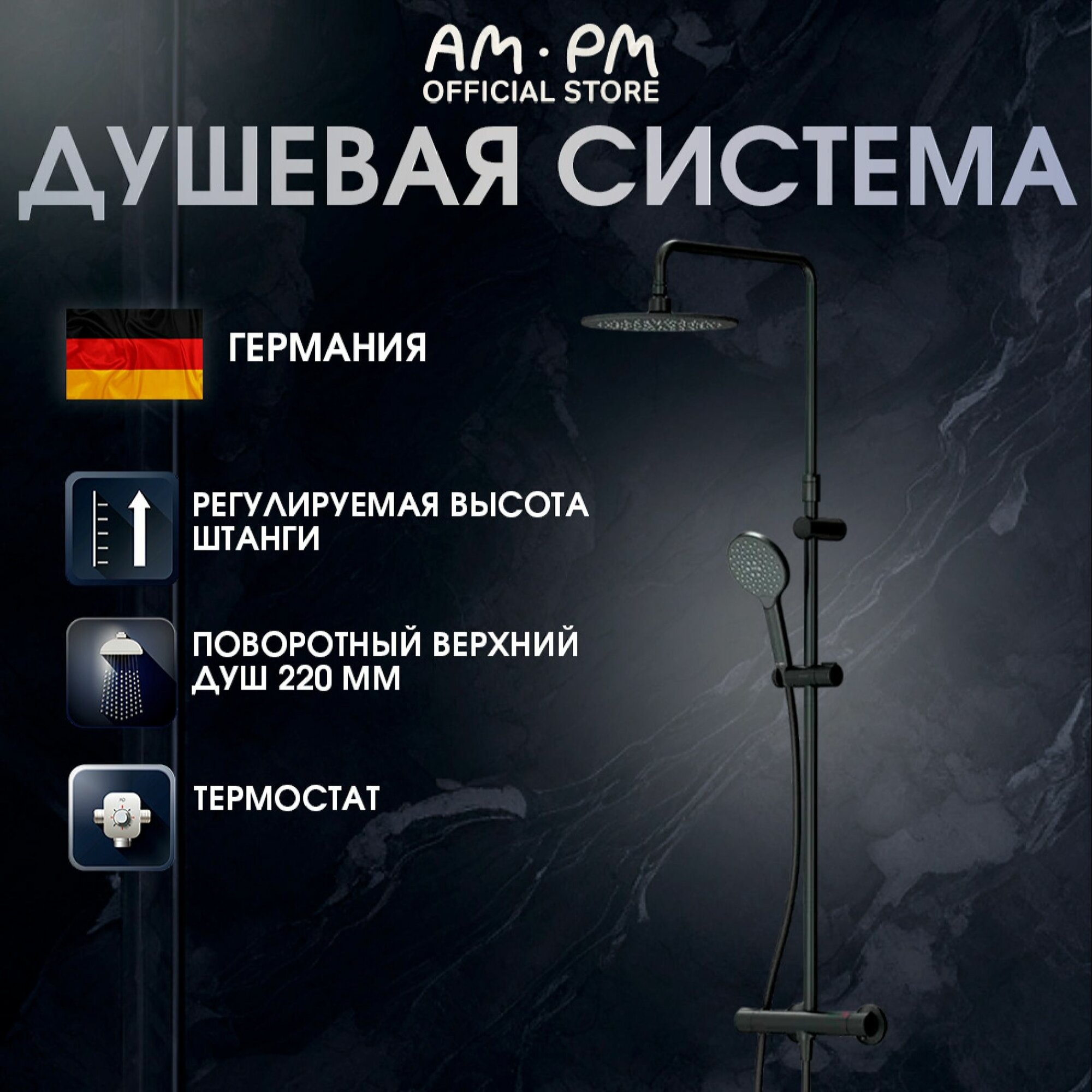 Душевая система с тропическим душем AM.PM Chic смесителем черный матовый, без излива, лейка 3 режима интересное: