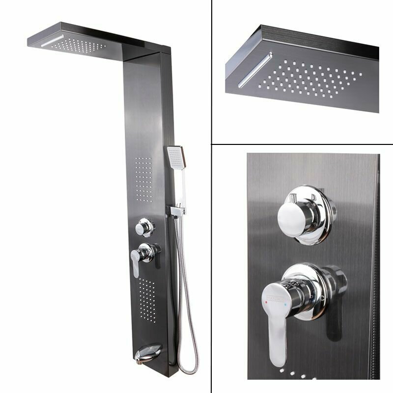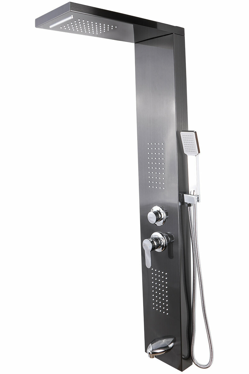 Душевая панель, душевая система, душевой гарнитур Vigro VG2523 с тропическим душем, черный интересное: