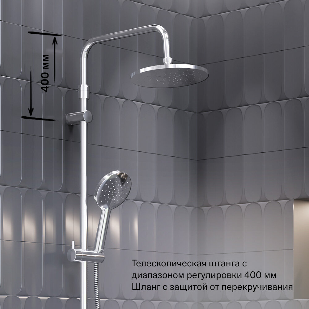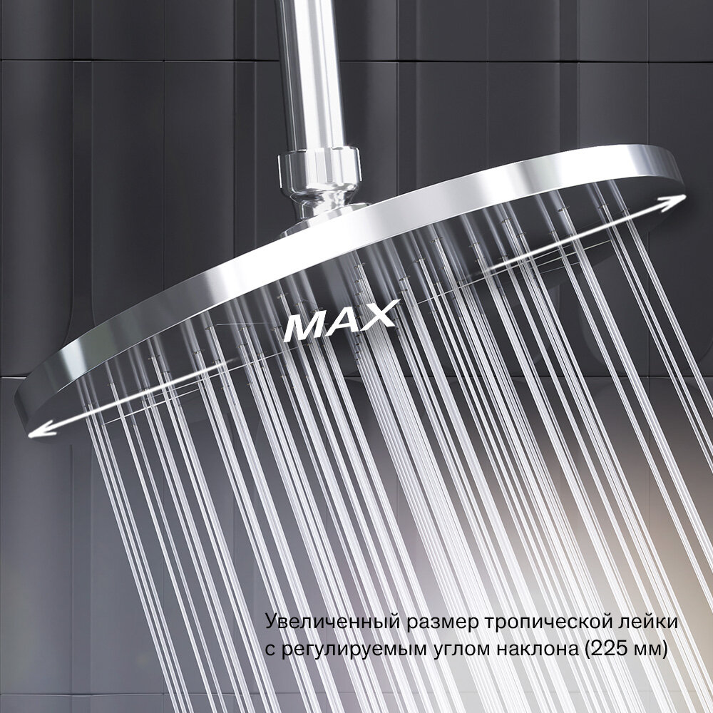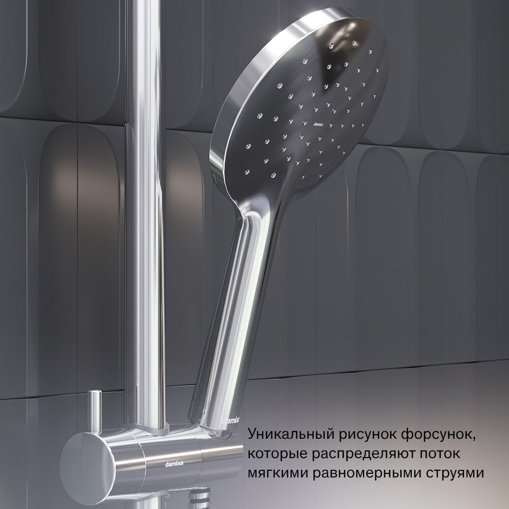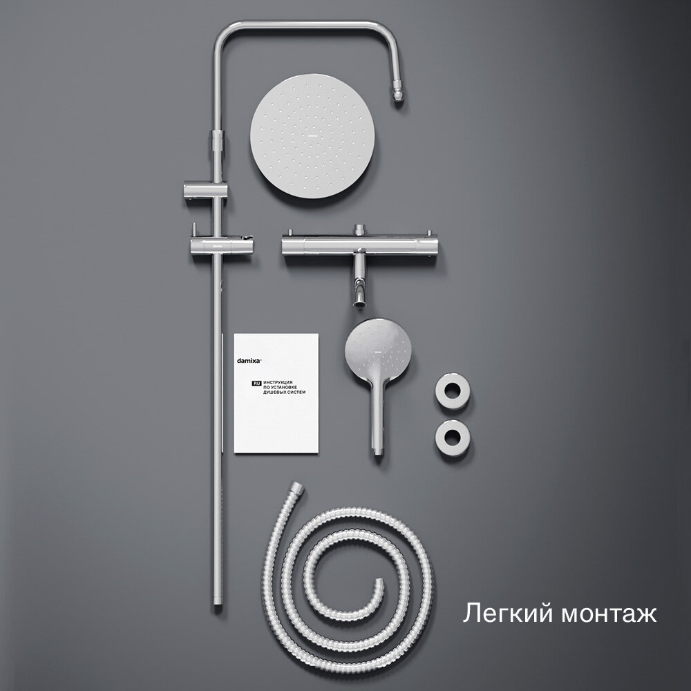 Душевая система Damixa Jupiter, с тропическим душем, хром, с термостатом, складной излив интересное: