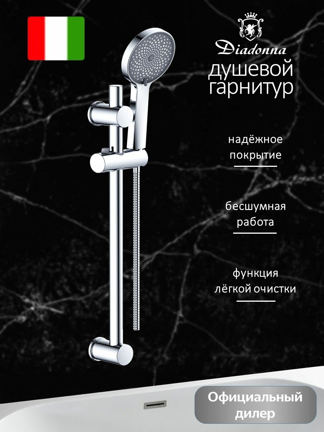 Душевой гарнитур Diadonna D64-0007, нержавеющая сталь, лейка для душа 3 режима интересное: