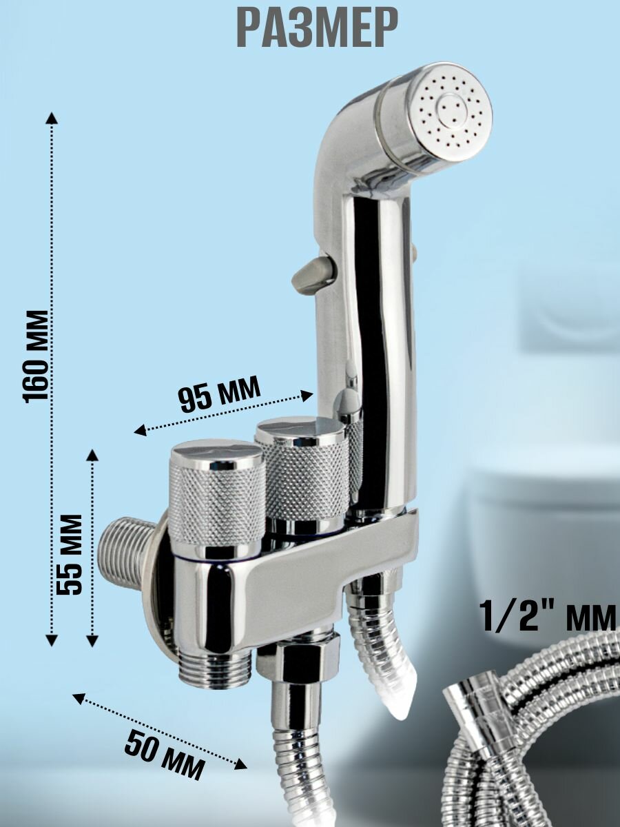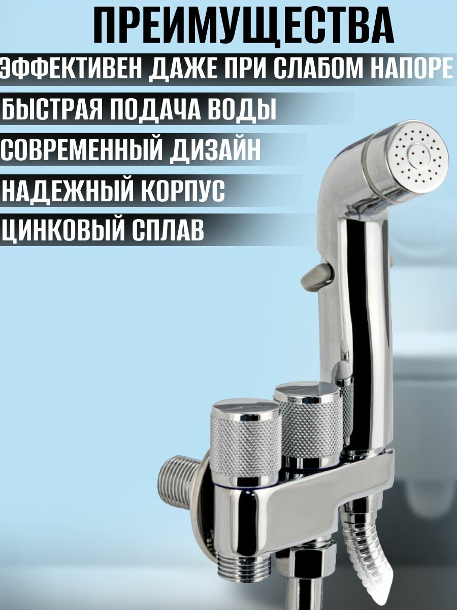 Набор с гигиеническим душем, кран с выходом для подключения к унитазу, лейка, шланг, встроенный кронштейн, цвет хром. интересное: