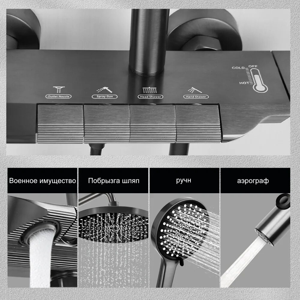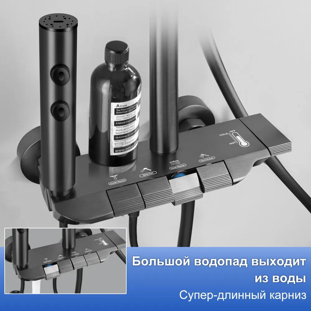 Душевая система с тропическим душем, кран для ванной с душем, набор для ванной комнаты, серый интересное: