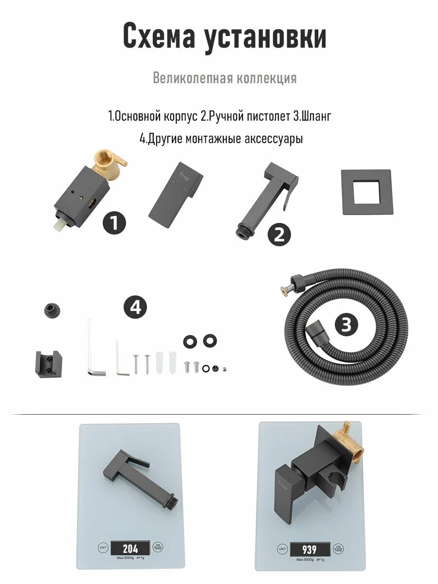 Гигиенический душ со смесителем Frap F7506-9 латунь оружейная сталь интересное: