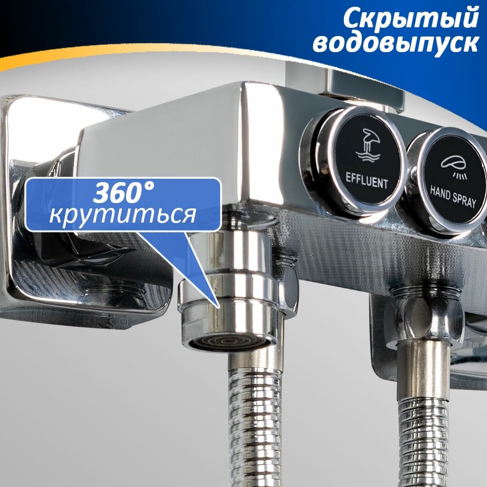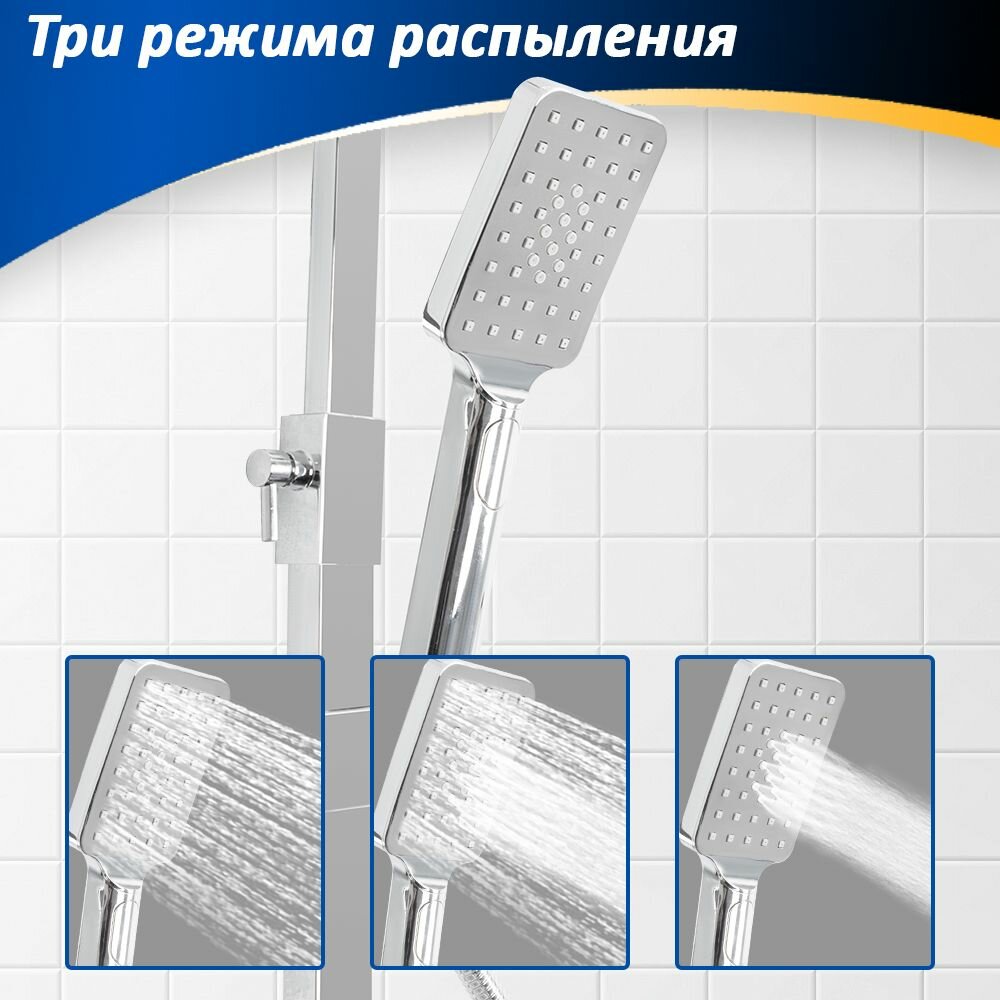 Душевая система, смеситель для ванны, тропический душ, с тропическим душем и смесителем, комплект, с термостатом, Серебро интересное: