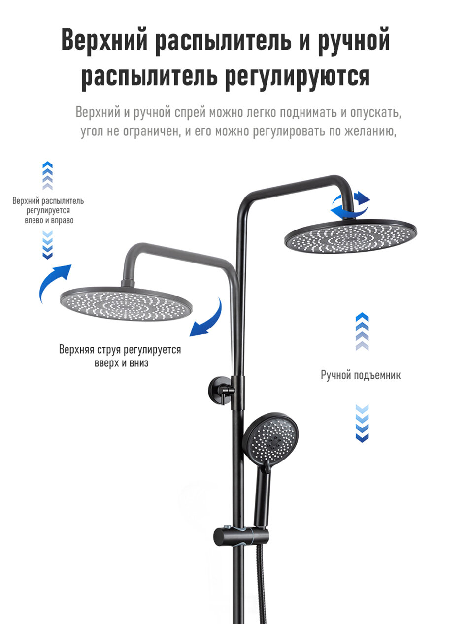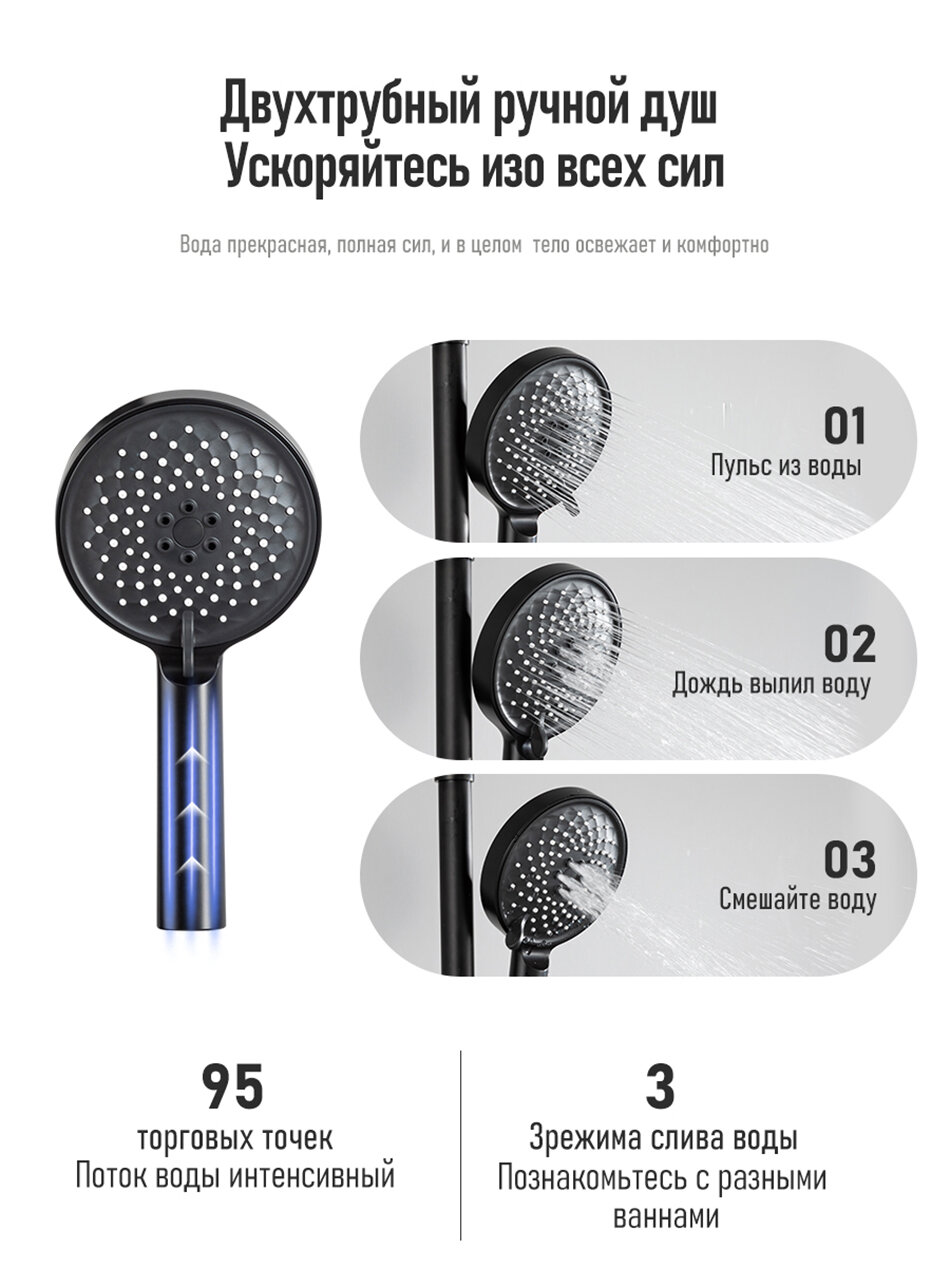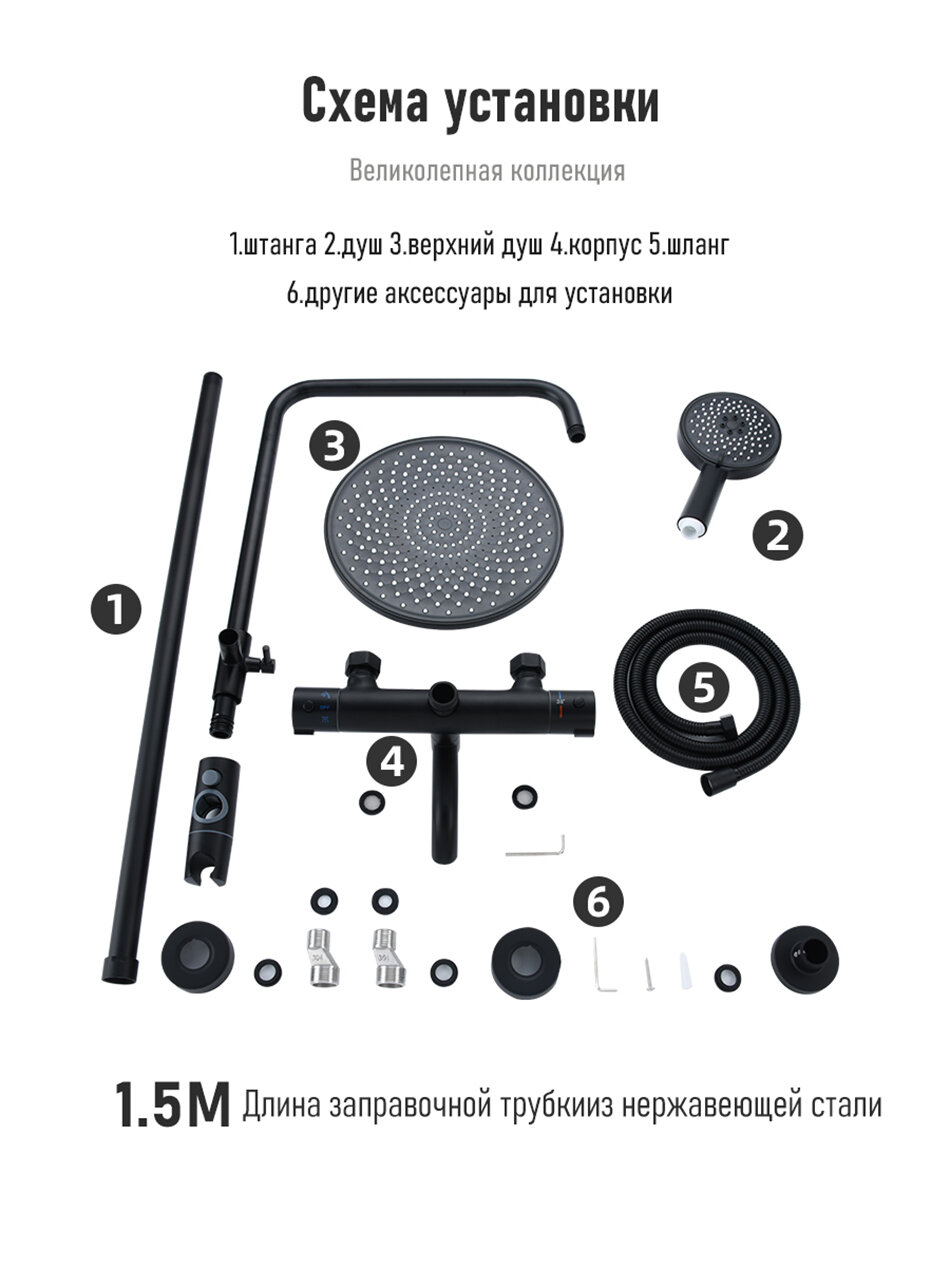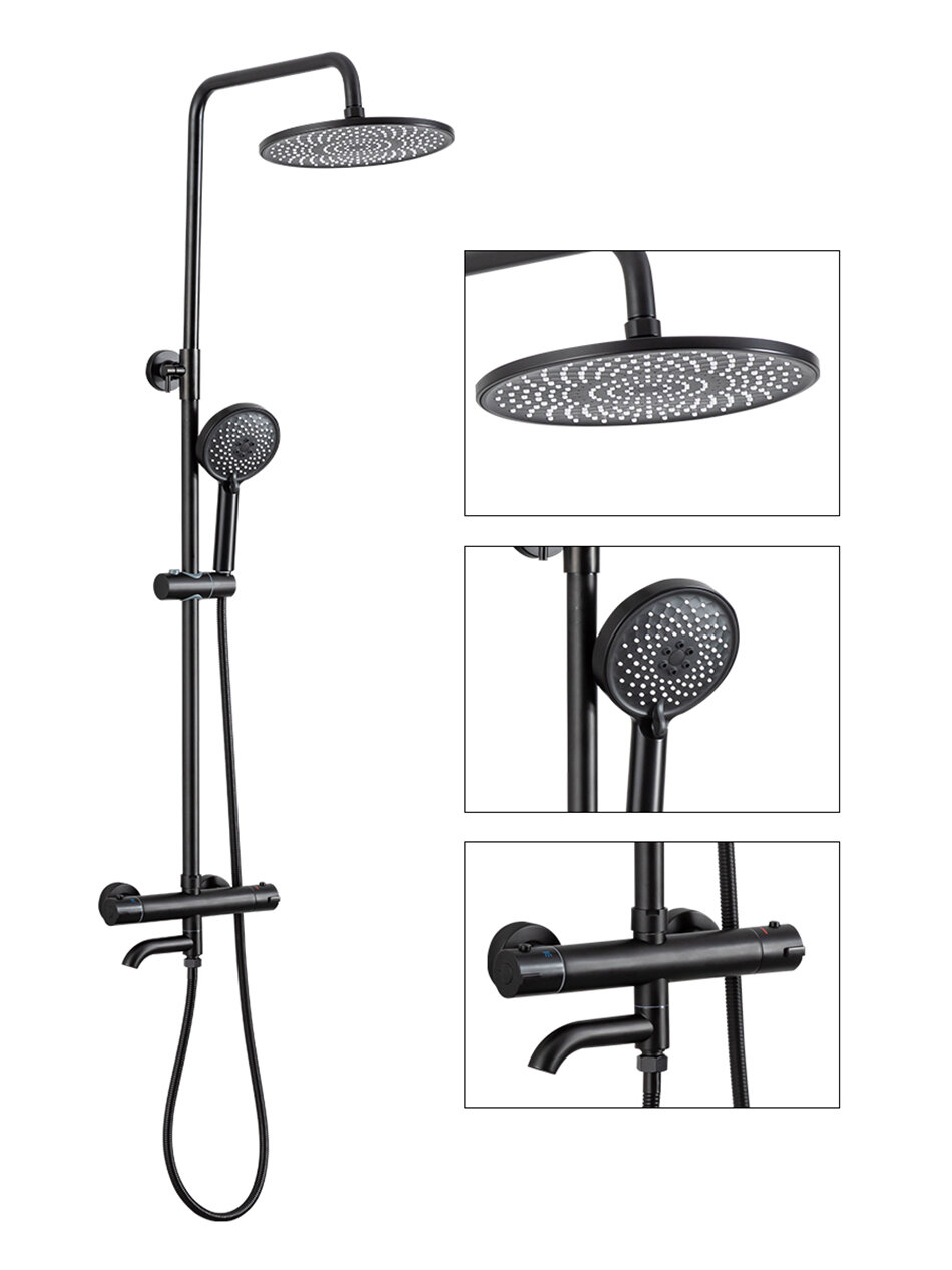 Душевая система с термостатом и тропическим душем Gappo Y23501 черный интересное: