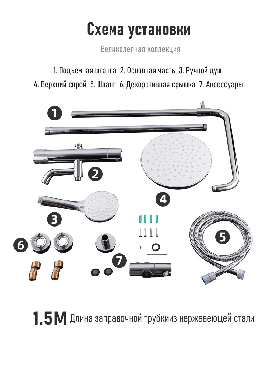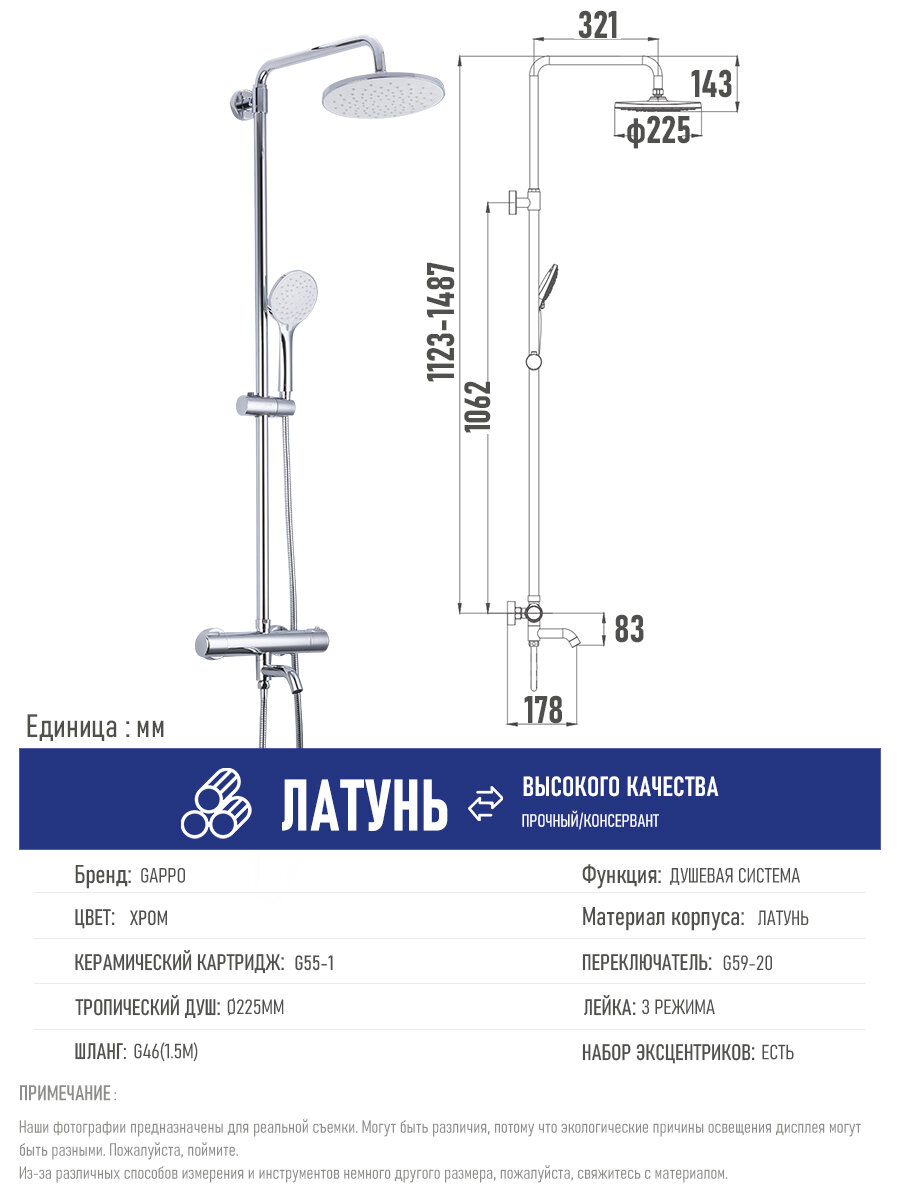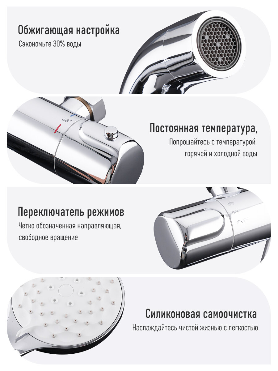 Душевая система с термостатом Gappo G2490 с тропическим душем латунь хром интересное: