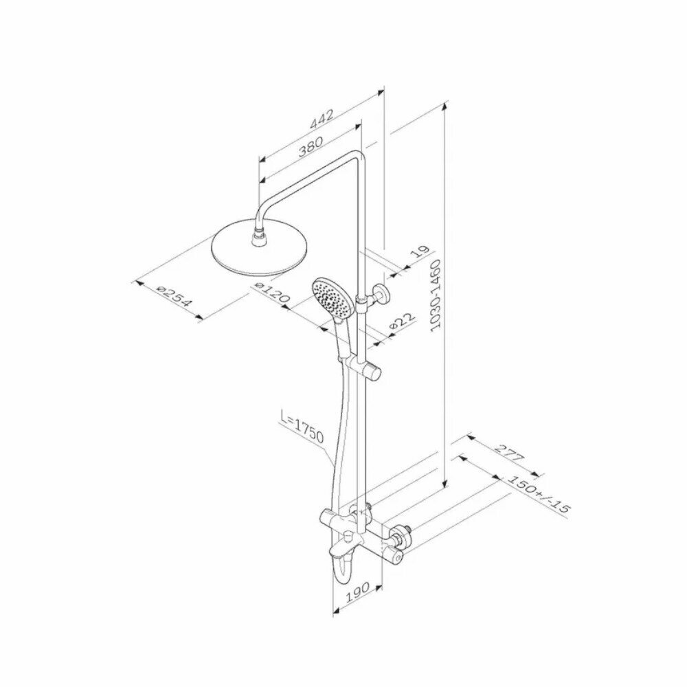 Душевая система AM.PM Сhic, с тропическим душем, сс полкой, складной поворотный излив, хром