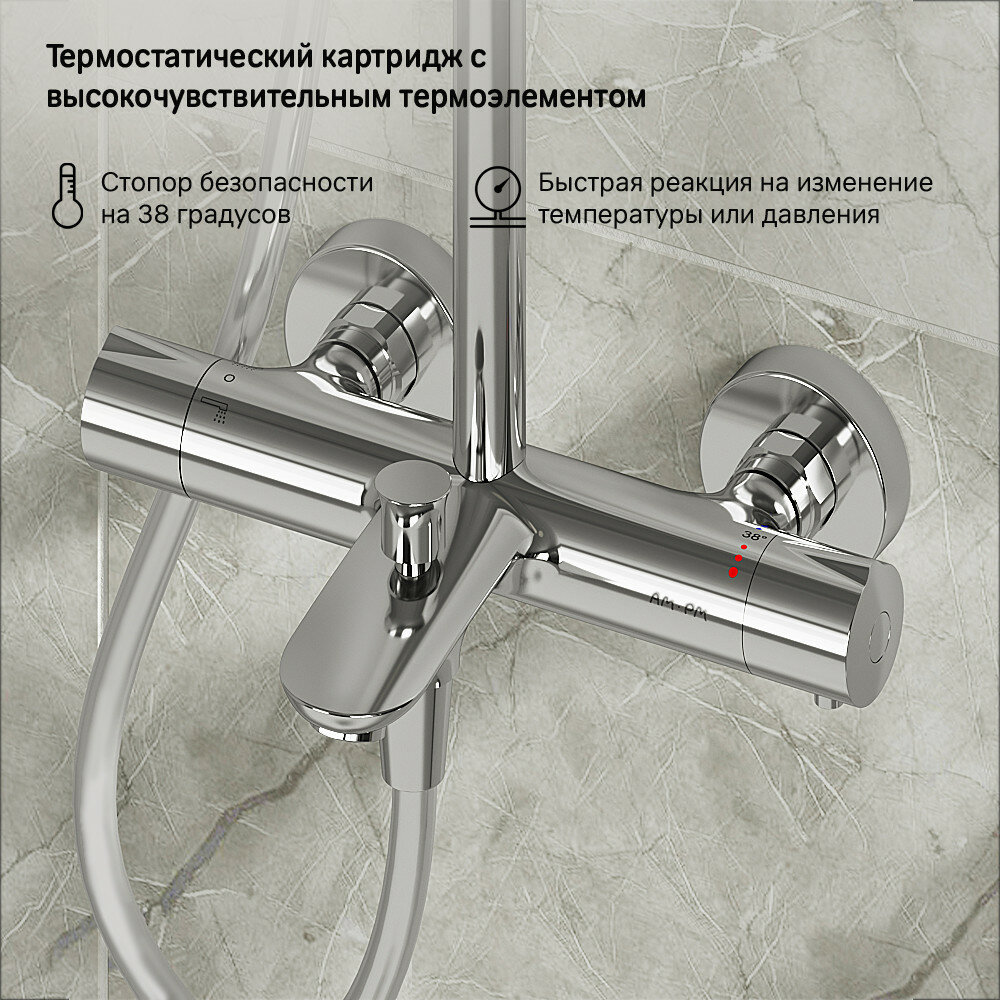Душевая система AM.PM Сhic, с тропическим душем, хром, со стопором безопасности, с изливом, 3 режима интересное: