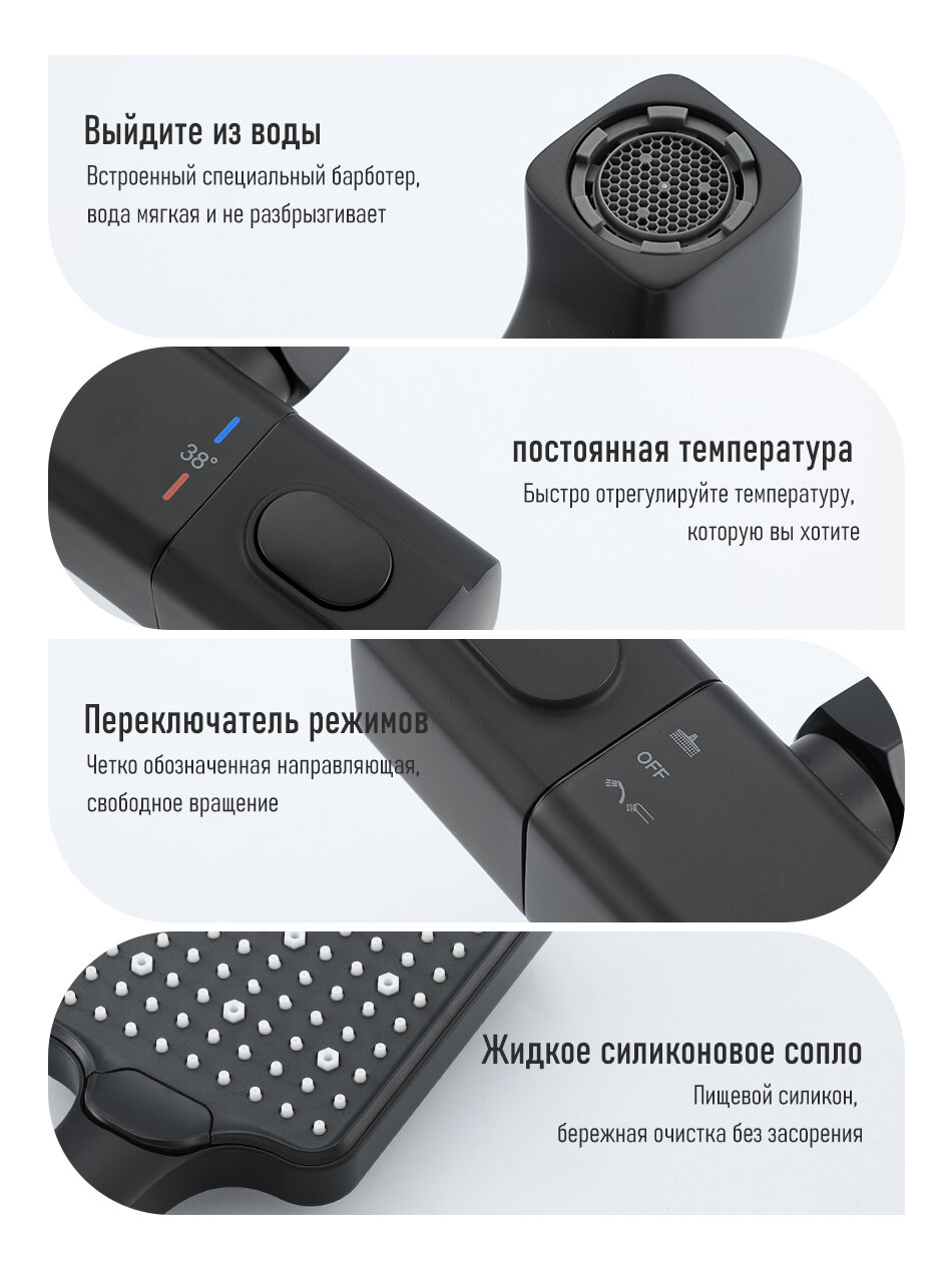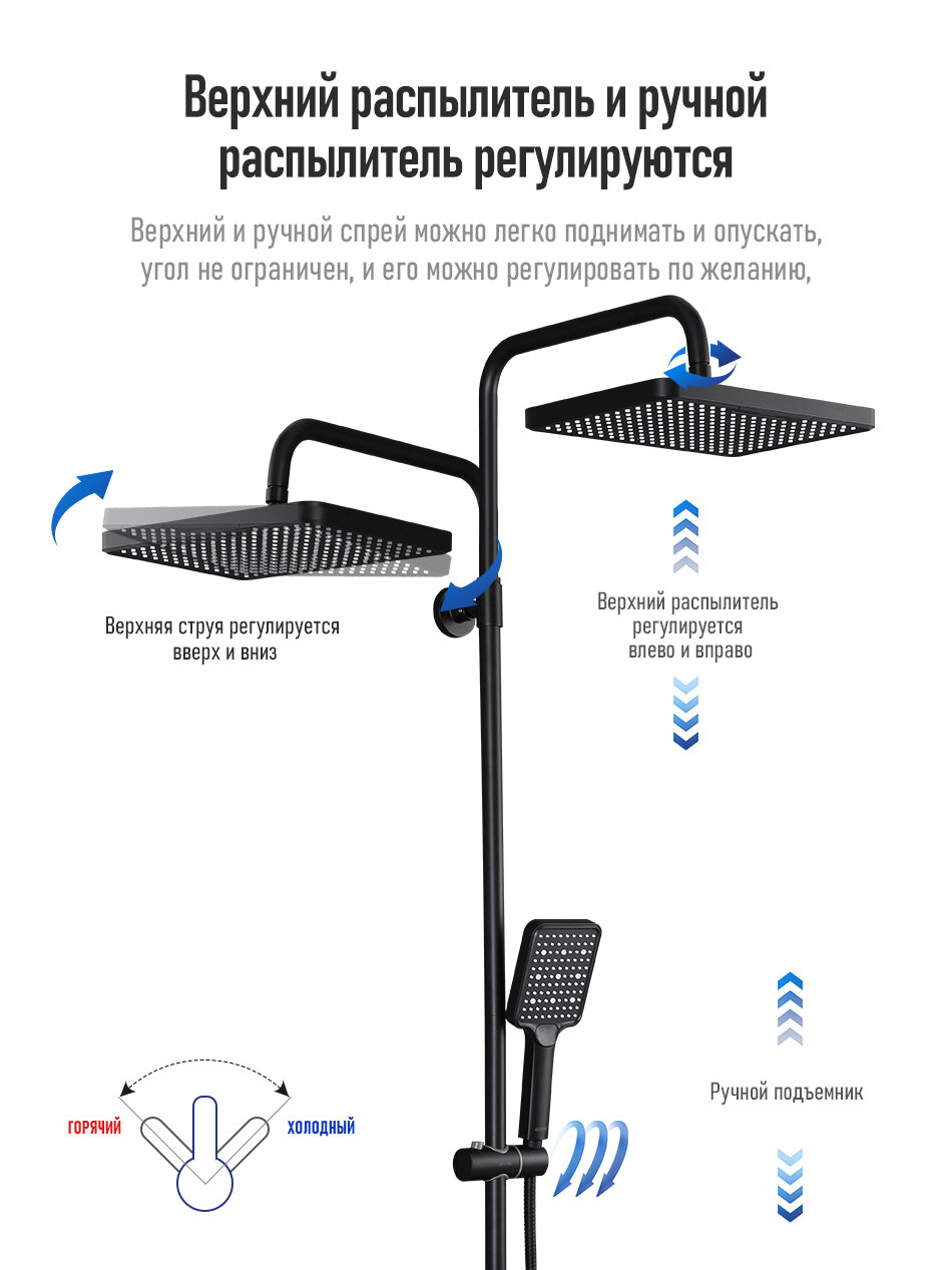 Душевая система с термостатом душевая система с тропическим душем со смесителем водопад Gappo G24660-6 Черный интересное: