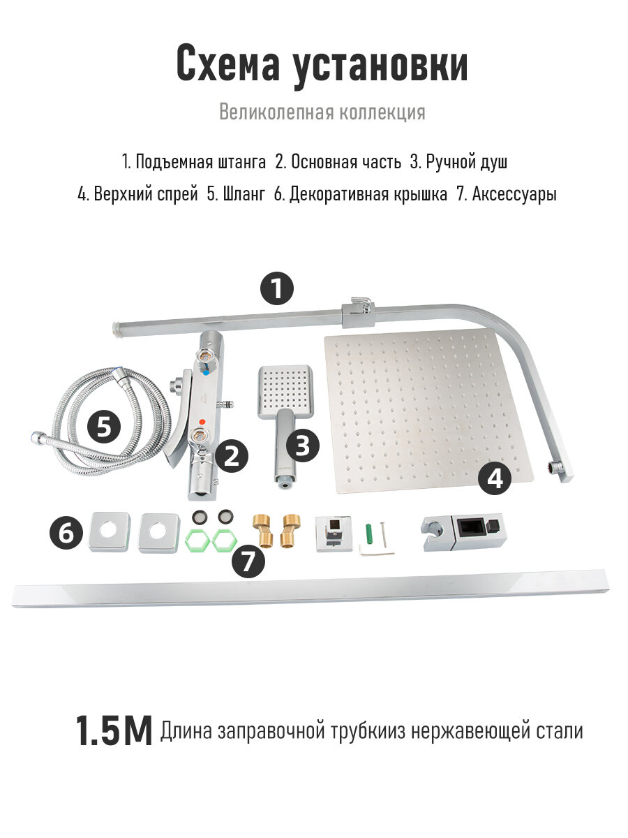 Душевая система с тропическим душем со смесителем водопад Gappo G2407-40 хром интересное: