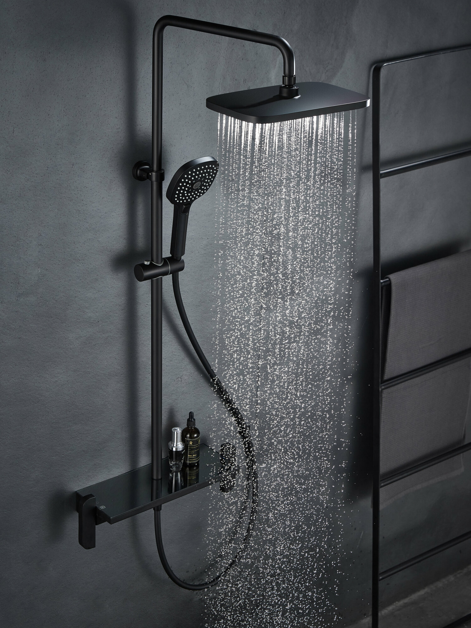Душевая стойка La'Casa с термастатом и панелью из закаленного стекла Черная интересное: