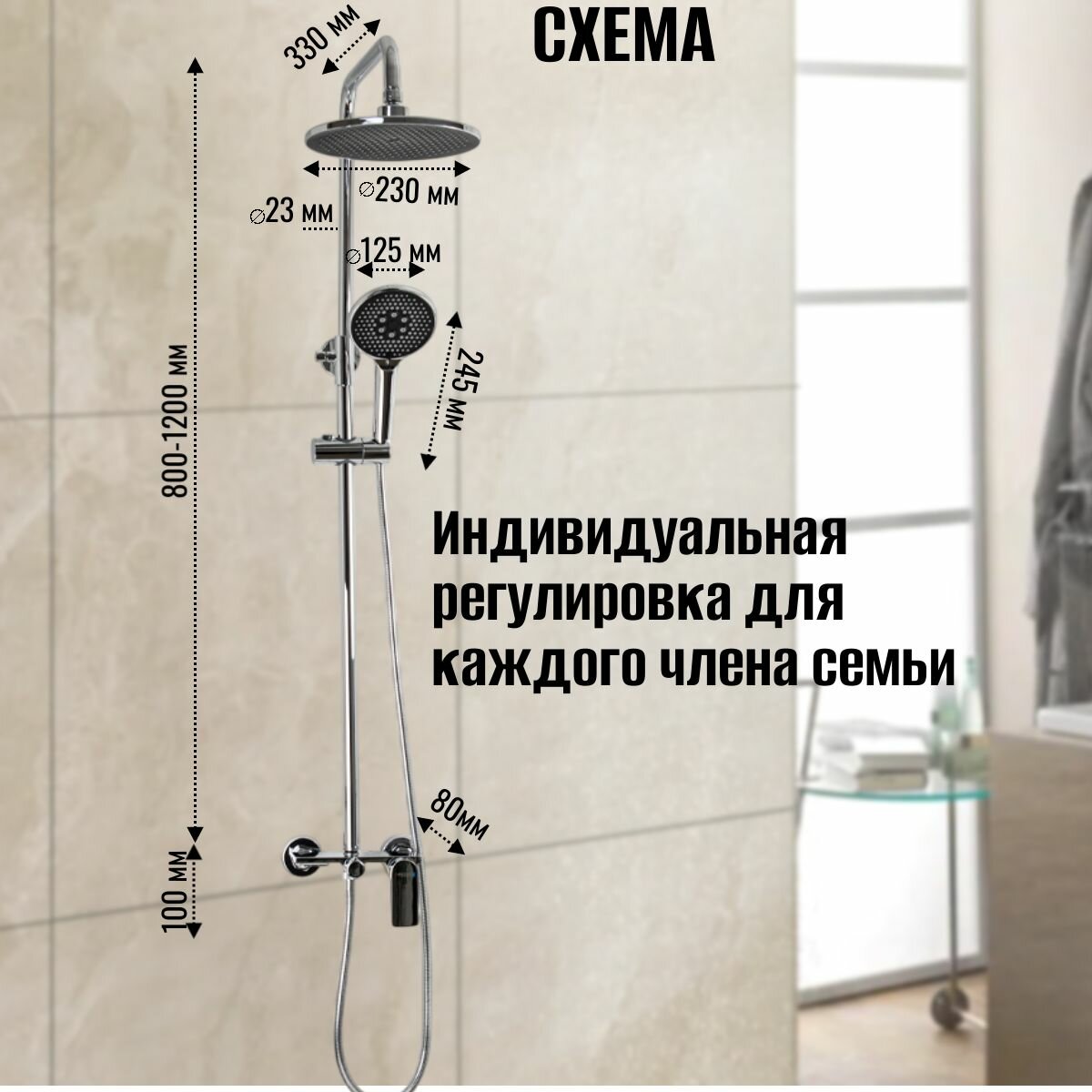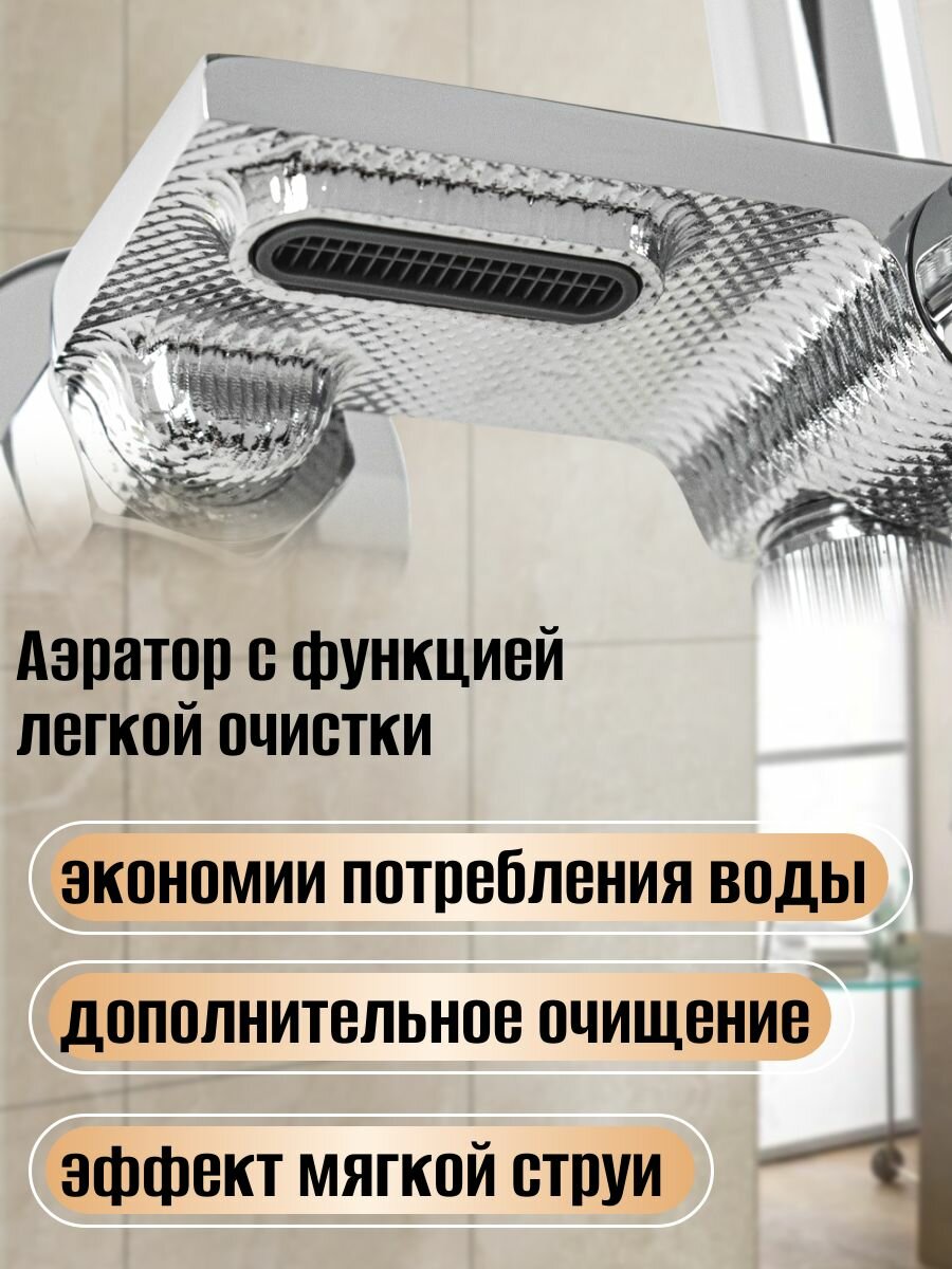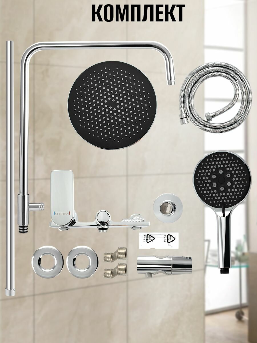 Смеситель + стойка душевая "тропический душ" с двумя круглыми лейками, квадратный горизонтальный, цвет хром. интересное: