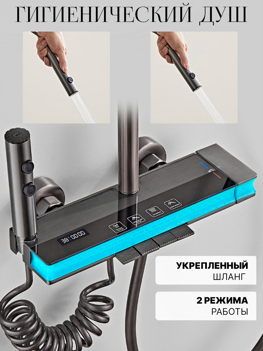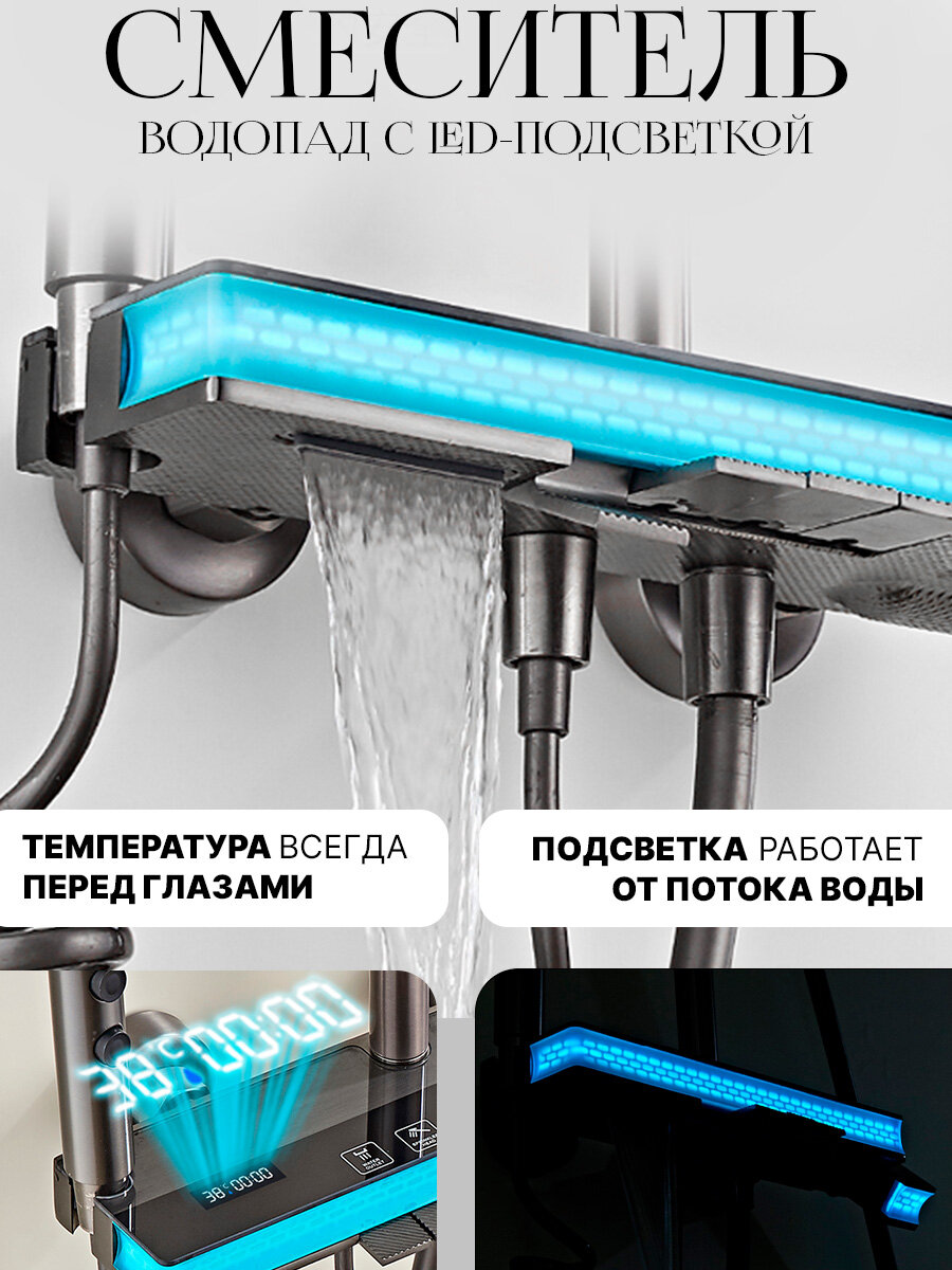 Душевая система DHome 3в1 с тропическим душем и подсветкой, цвет серый металлик