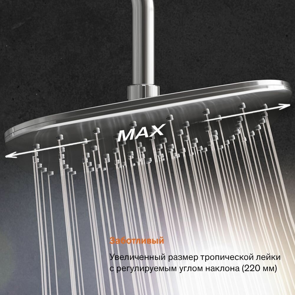 Душевая система с тропическим душем Damixa Space встраиваемая, с изливом, ручной душ, хром интересное: