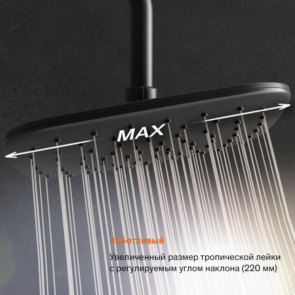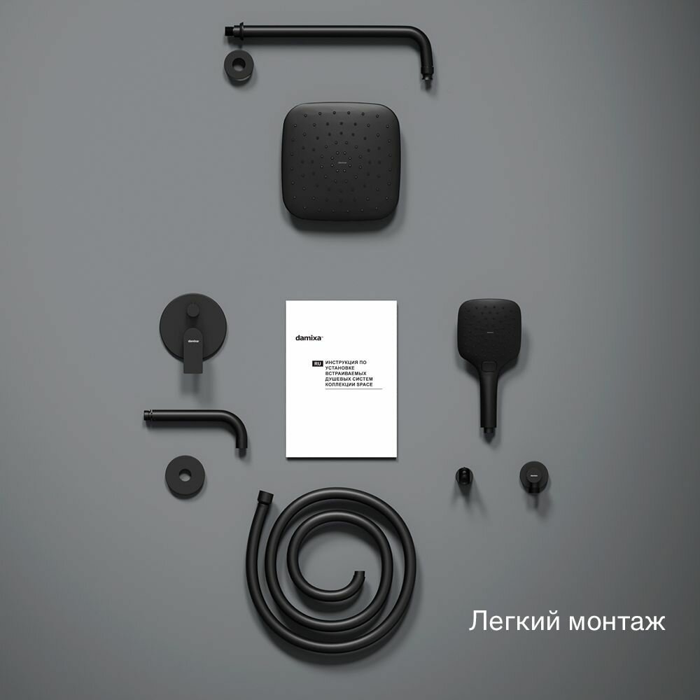 Душевая система с тропическим душем Damixa Space встраиваемая, с изливом, ручной душ, черный матовый интересное: