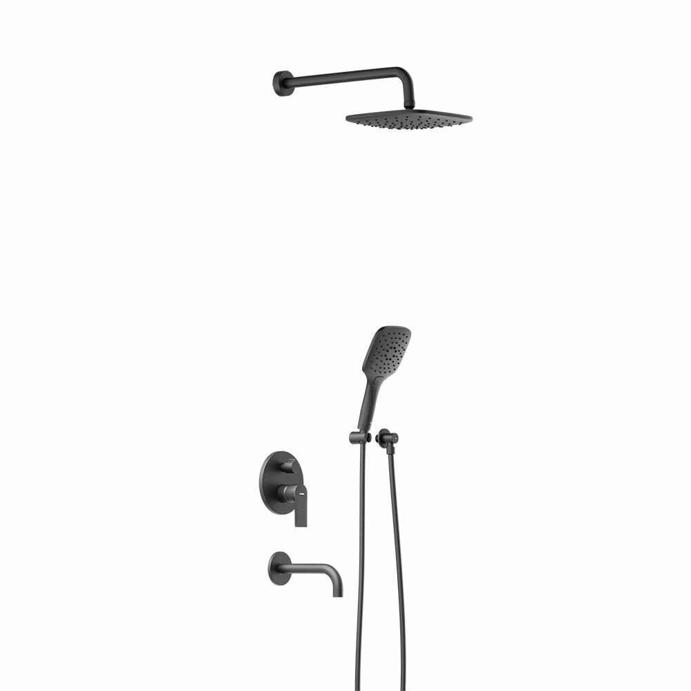 Купить Душевая система с тропическим душем Damixa Space встраиваемая, с изливом, ручной душ, черный матовый