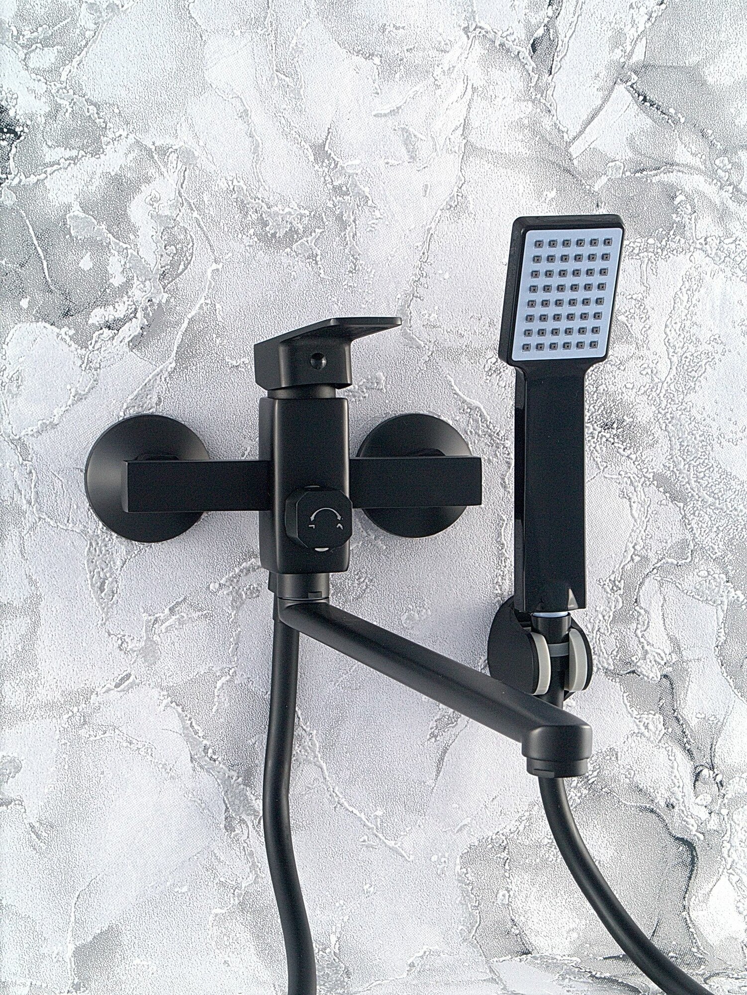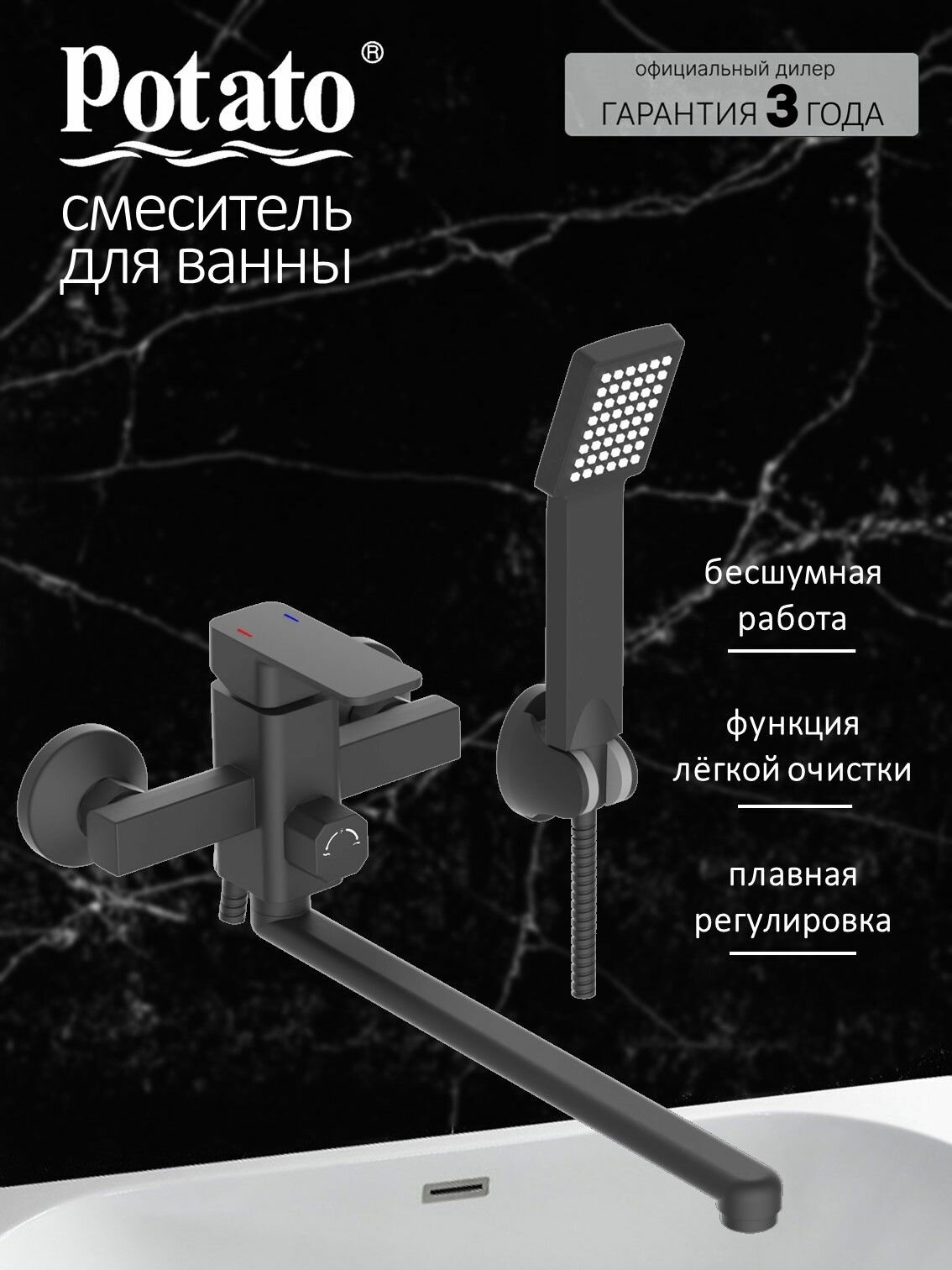 Смеситель для ванны с душем Potato P2206BL с длинным изливом, кран в ванную, черный интересное: