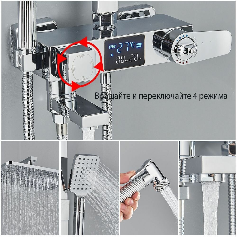 Купить Термостатический душ с цифровым дисплеем и шарнирным креплением для душа