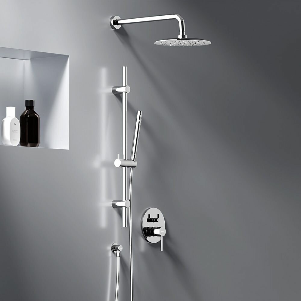 Душевая система с тропическим душем Damixa Scandinavian Pure хром, встраиваемый душевой комплект, штанга интересное: