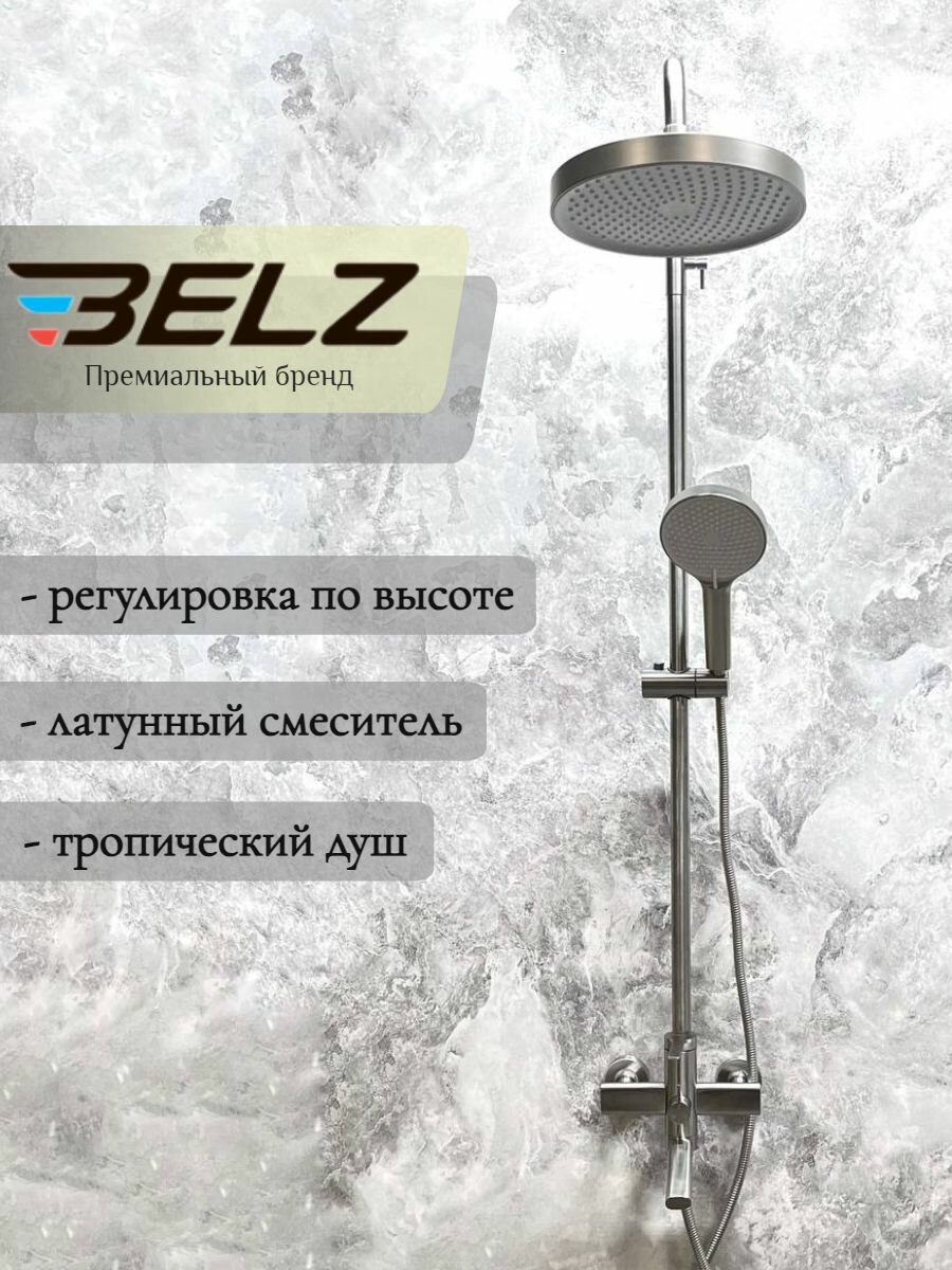 Душевая система с тропическим душем; Belz B24813-1 цвет: шлифованный хром, материал: нержавеющая сталь. интересное: