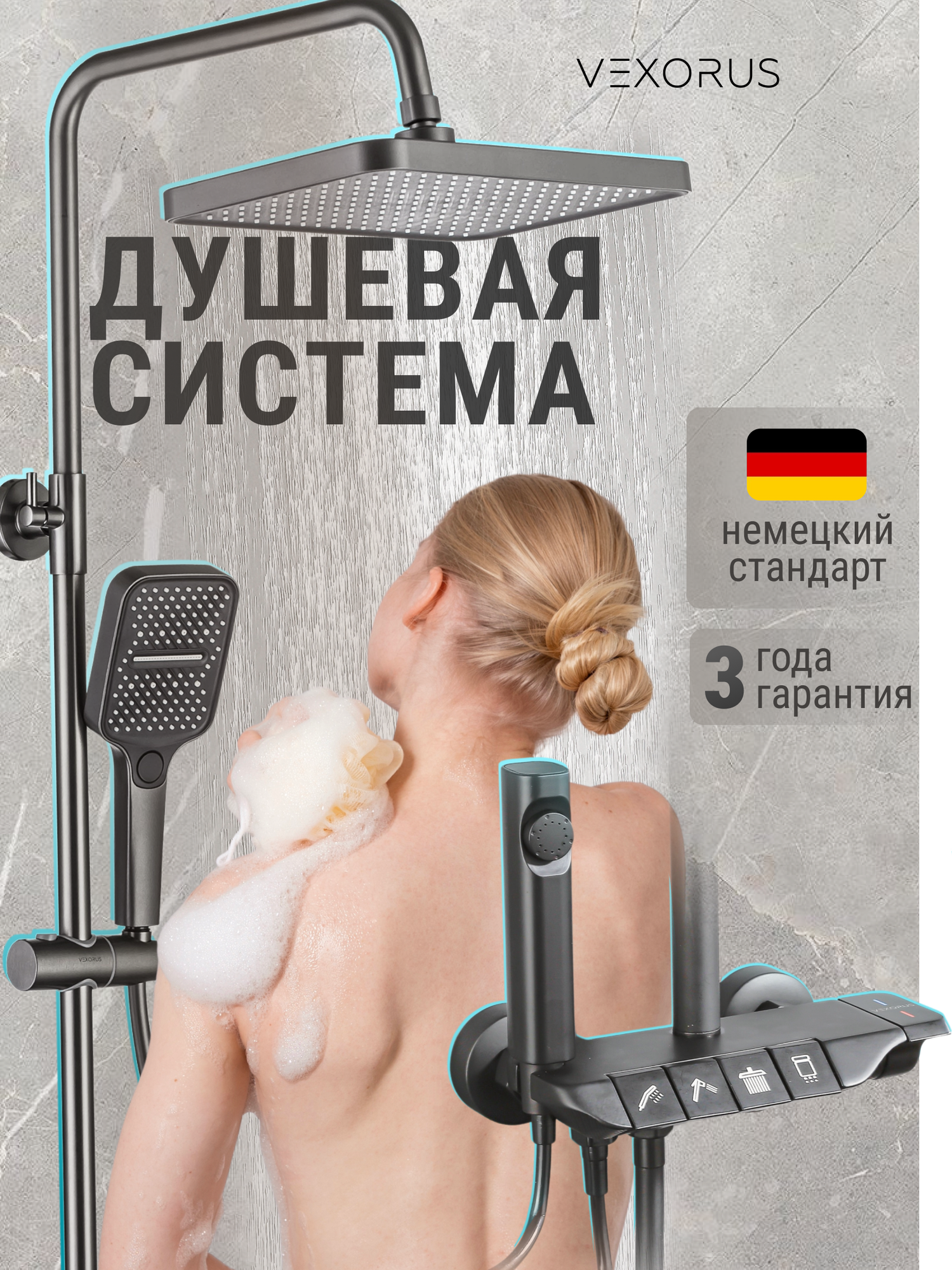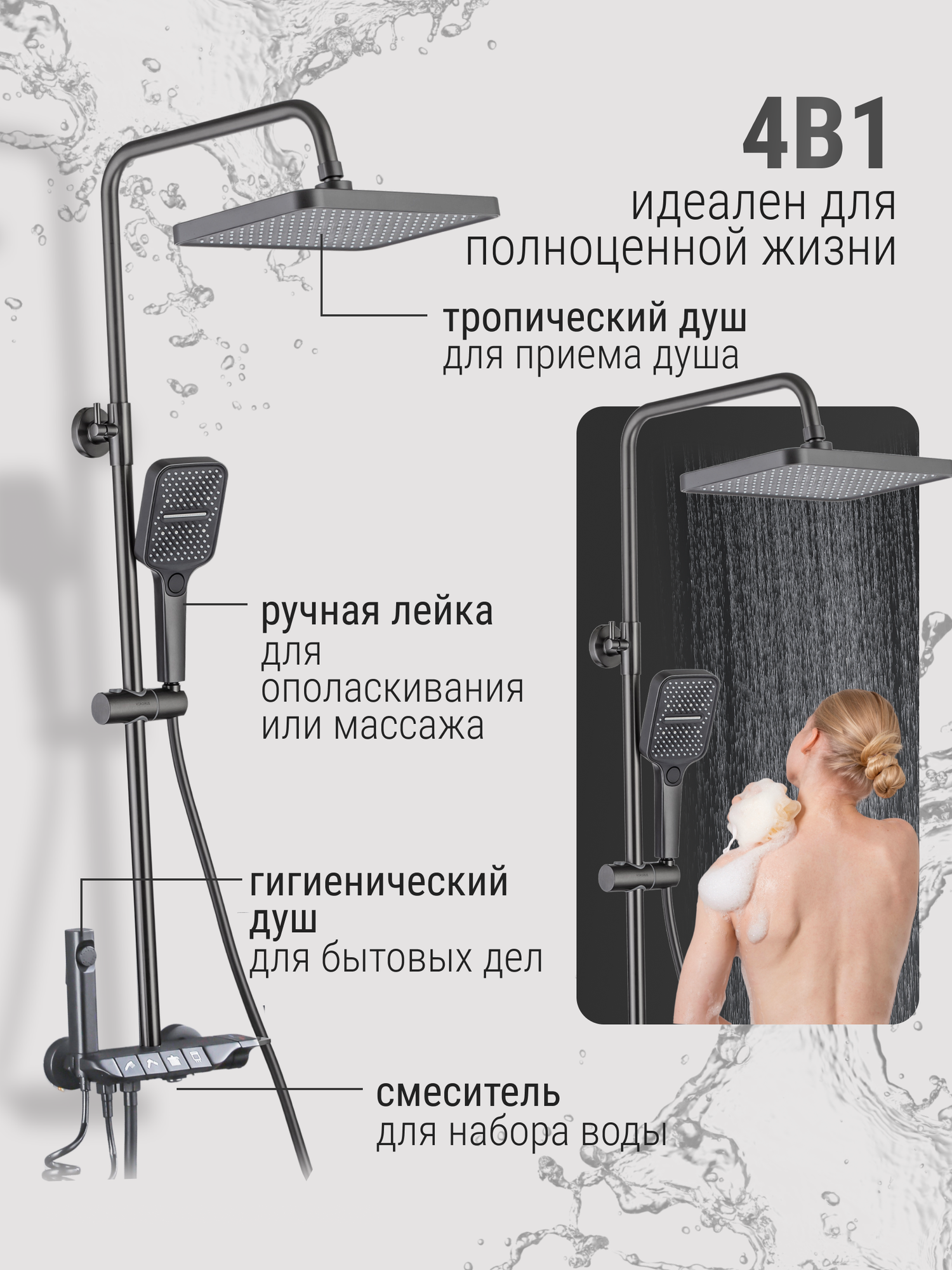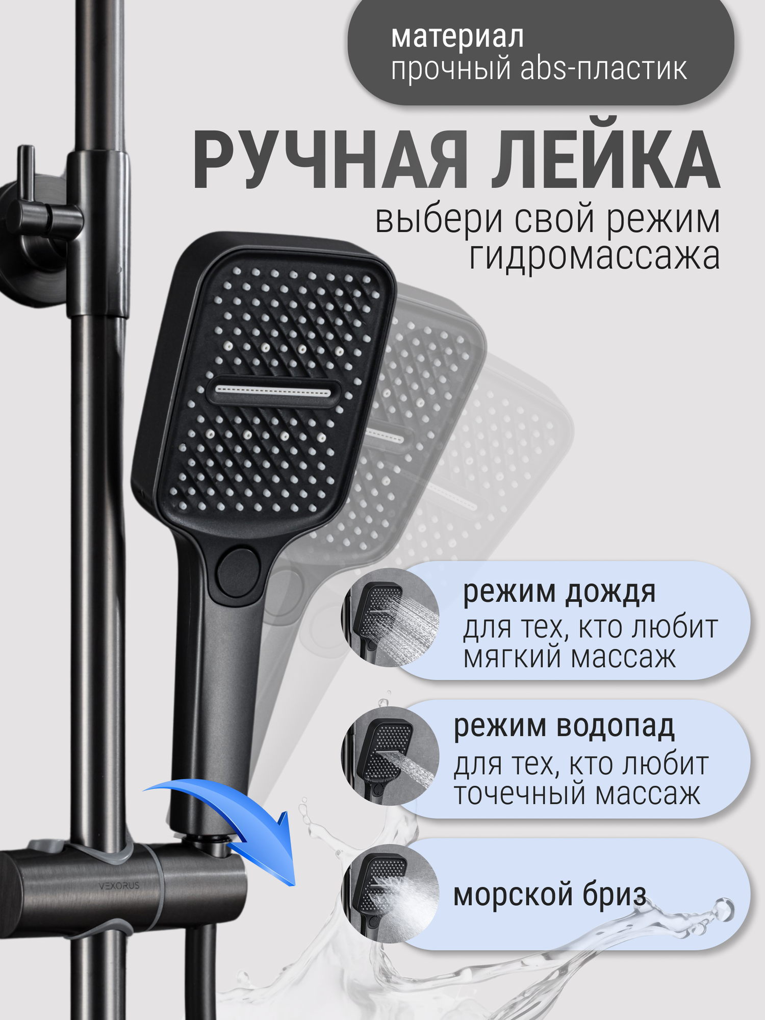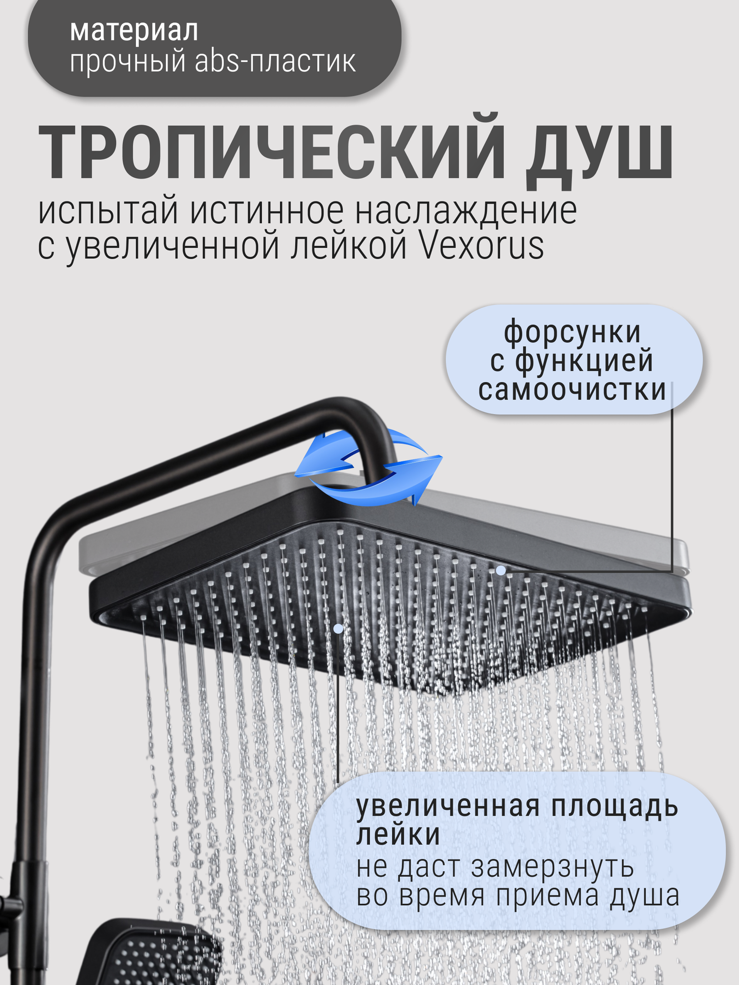 Душевая система Vexorus с тропическим душем и смесителем, комплект 4 в 1 интересное: