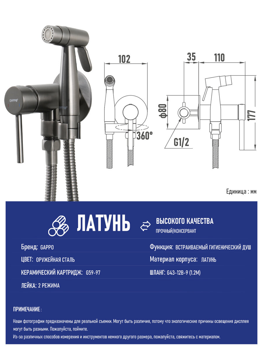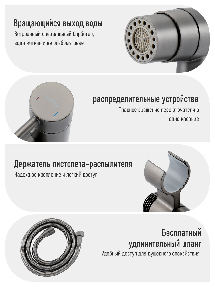 СохранитьВстраиваемый гигиенический душ со смесителем Смеситель для биде Gappo G7206-9 оружейная сталь интересное: