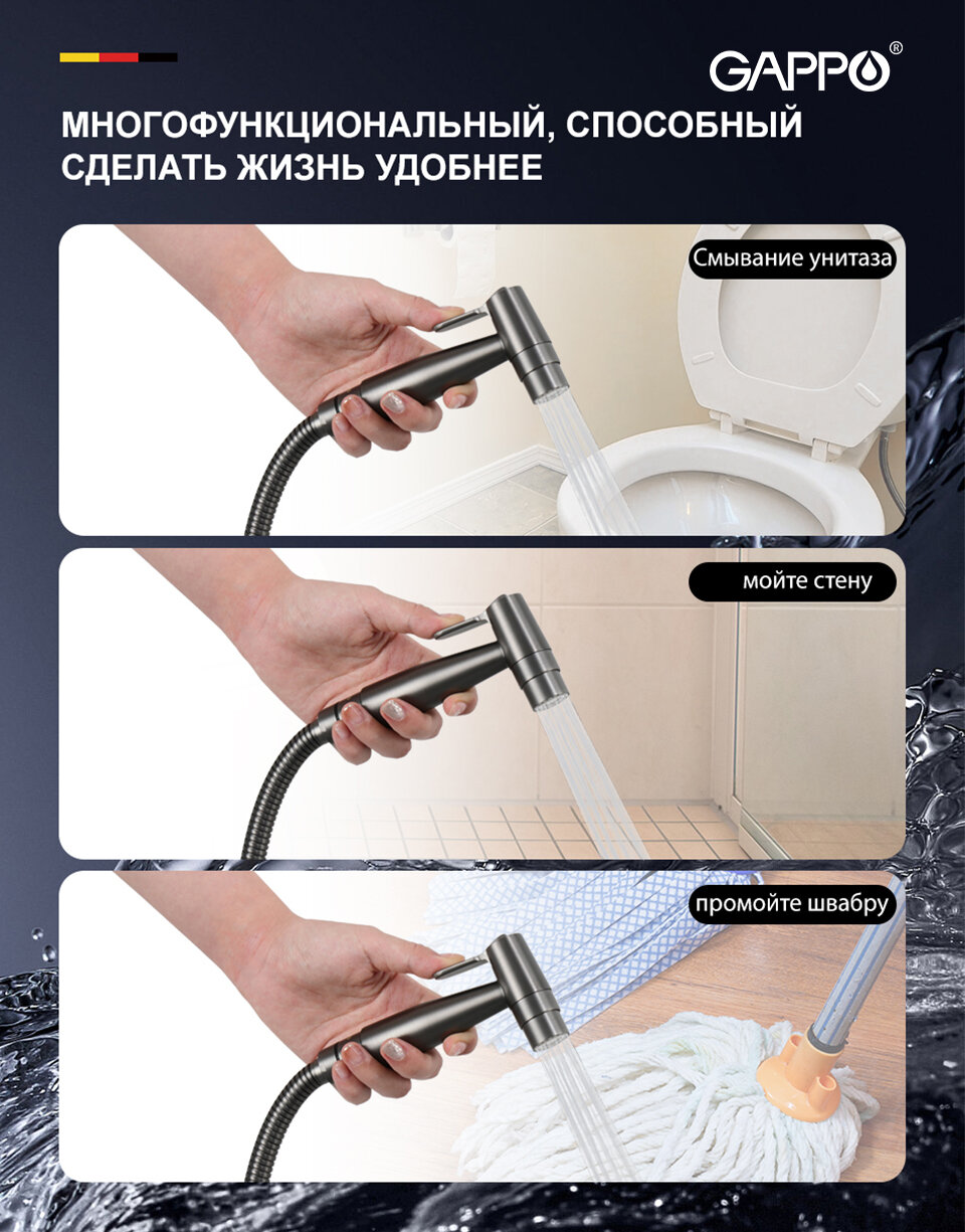 Гигиенический душ Gappo G7217-9, оружейная сталь