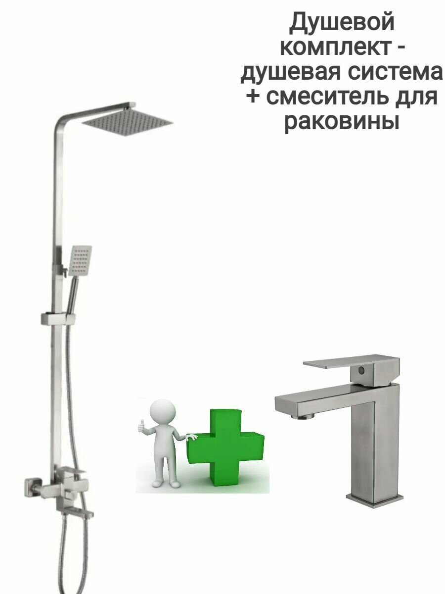Душевая система с тропическим душем и смеситель для раковины Haiba HB24803-HB10803-2, , нержавеющая сталь интересное: