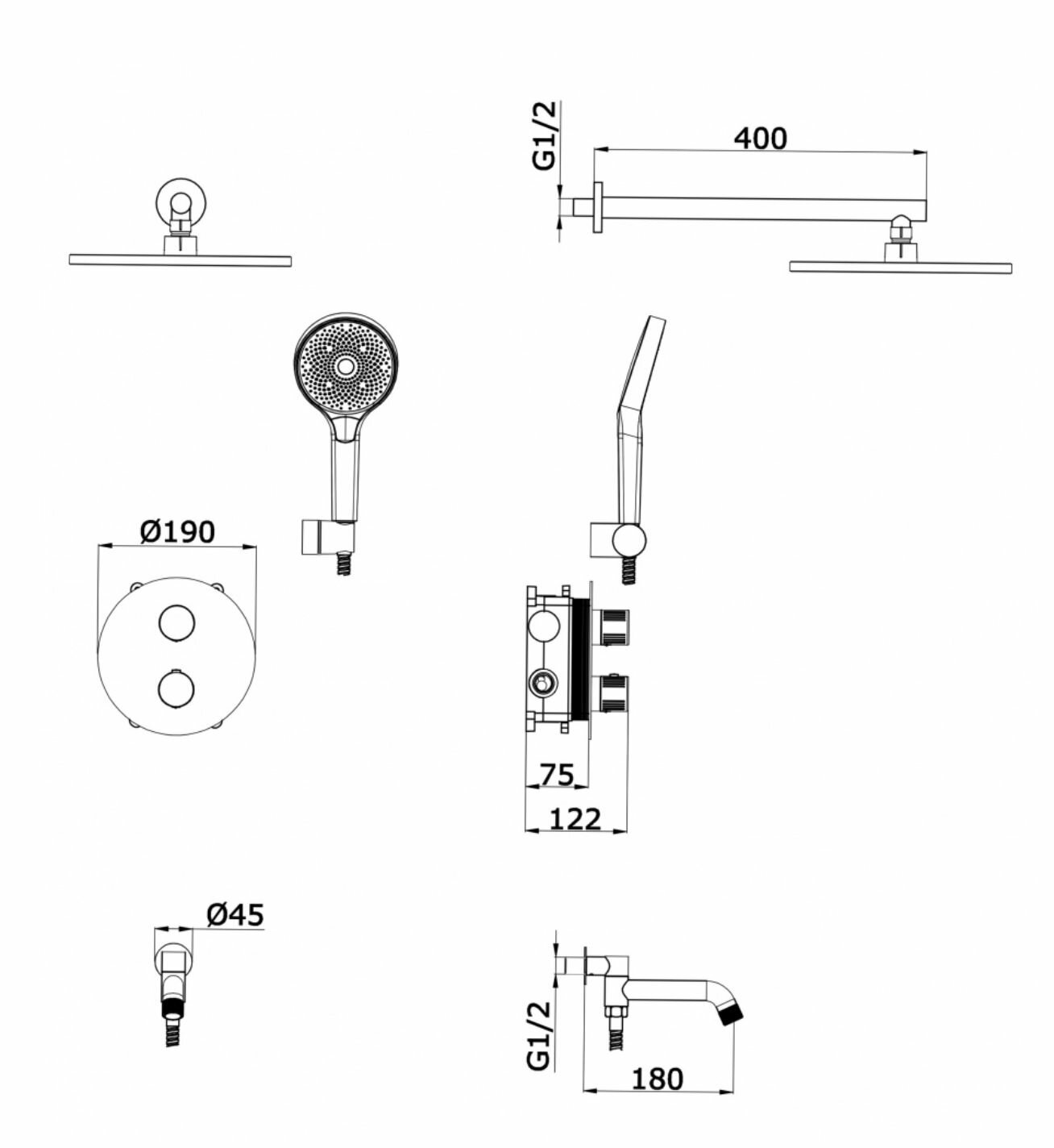 ViEiR V25 THERMO 3R05C2 IN WHITE встроенная душевая система с ручным душем и изливом, с термостатом, белый интересное: