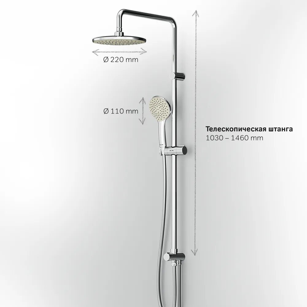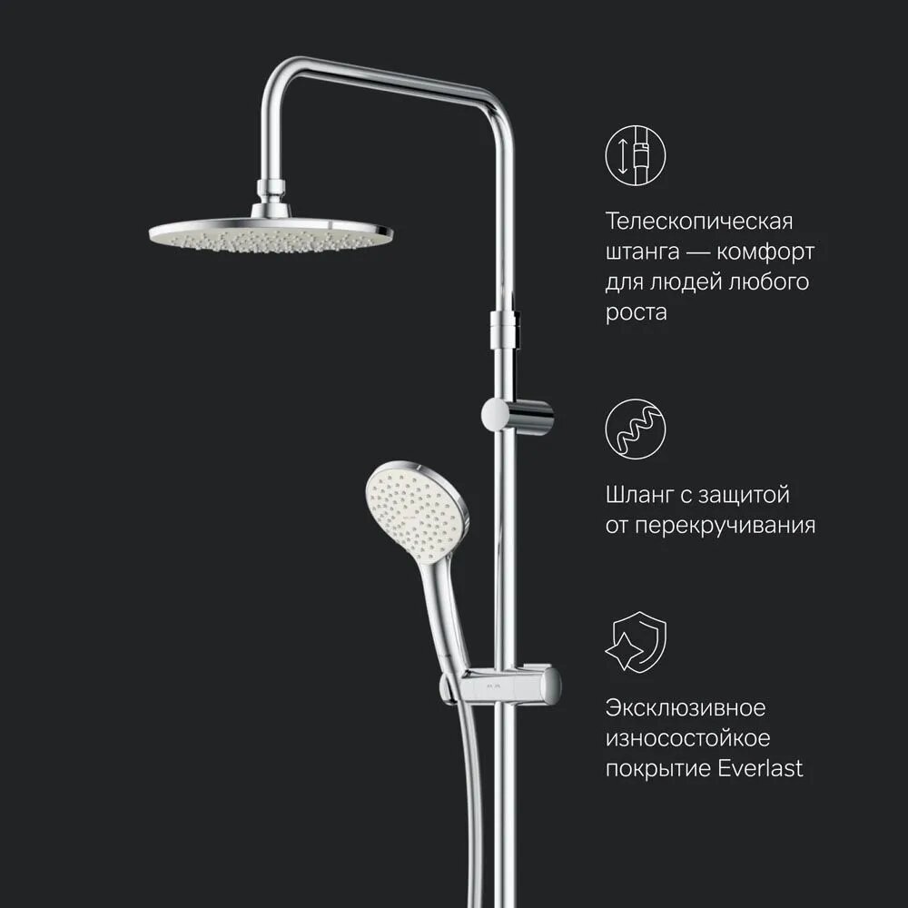 Душевая система с тропическим душем AM.PM Gem хром, поворотный верхний душ 220мм, лейка 110мм, 1 режим, без излива интересное: