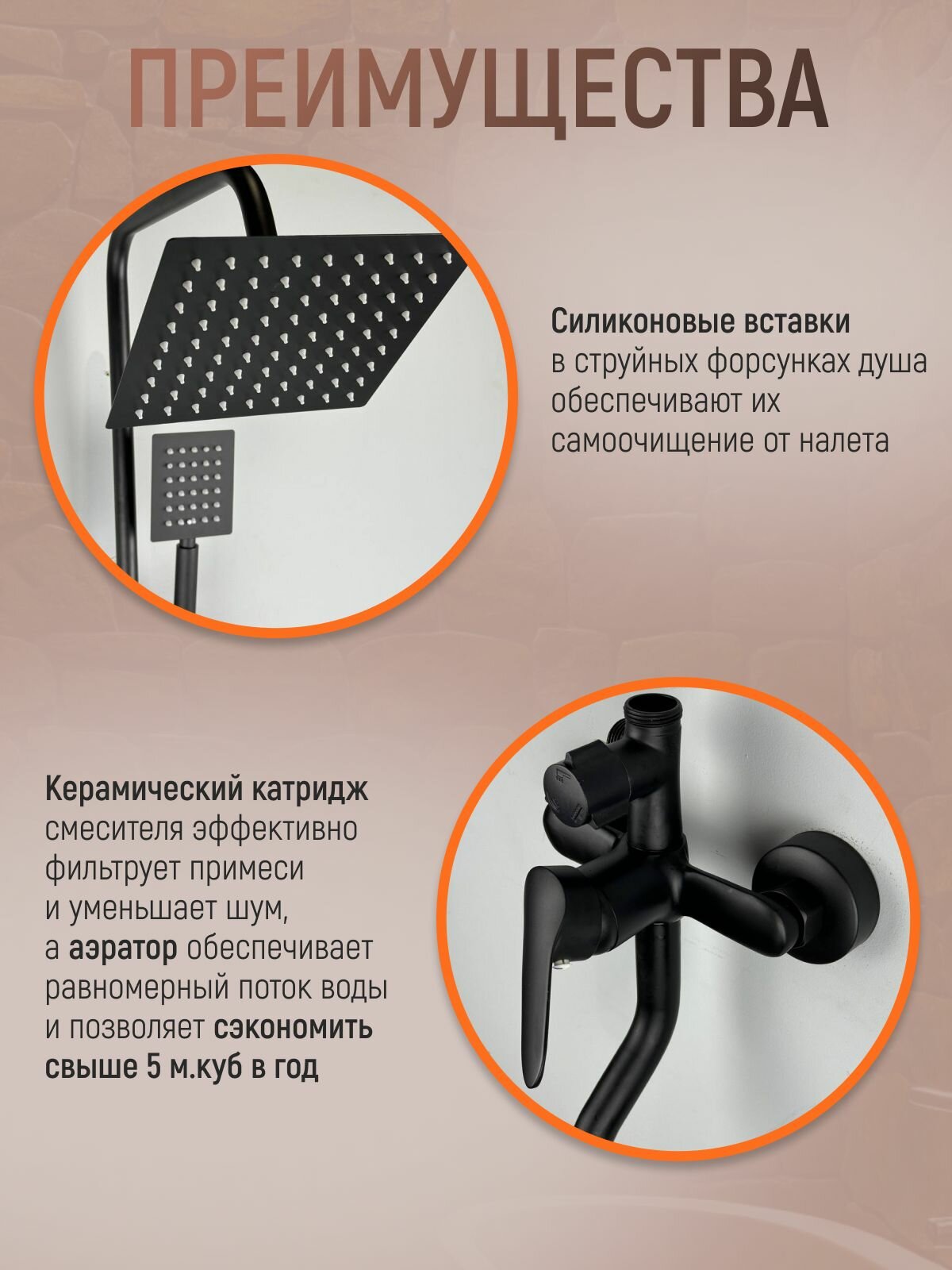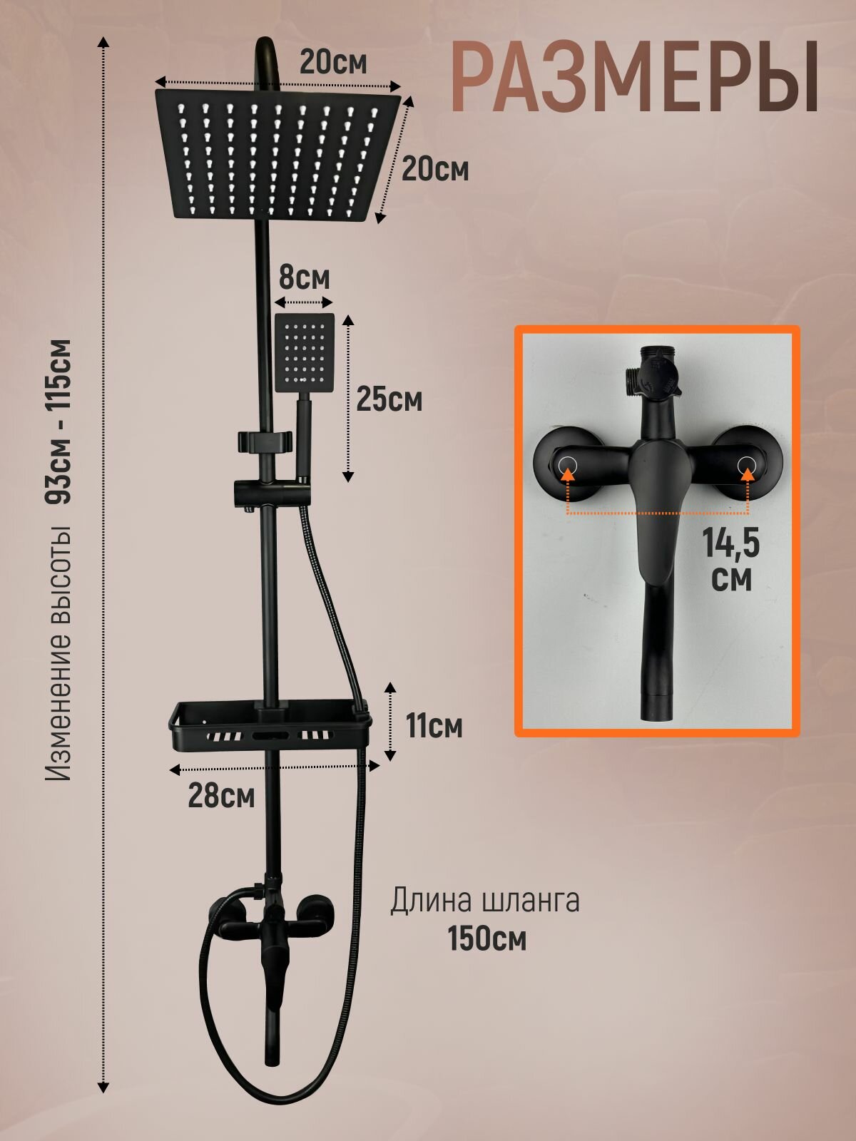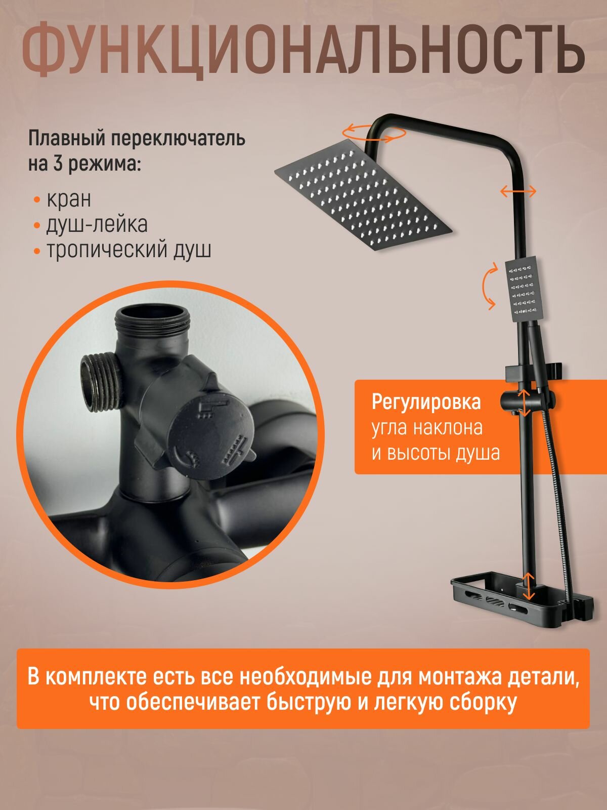 Душевая система с тропическим душем и смесителем черная 3 в 1. интересное: