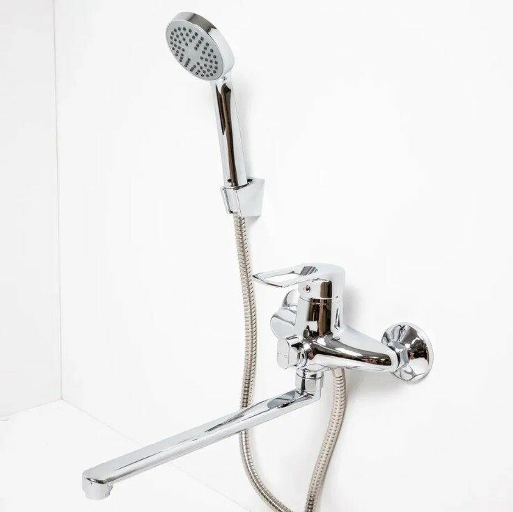 Смеситель для ванной с длинным изливом, с душем BT-1016, цвет: хром интересное: