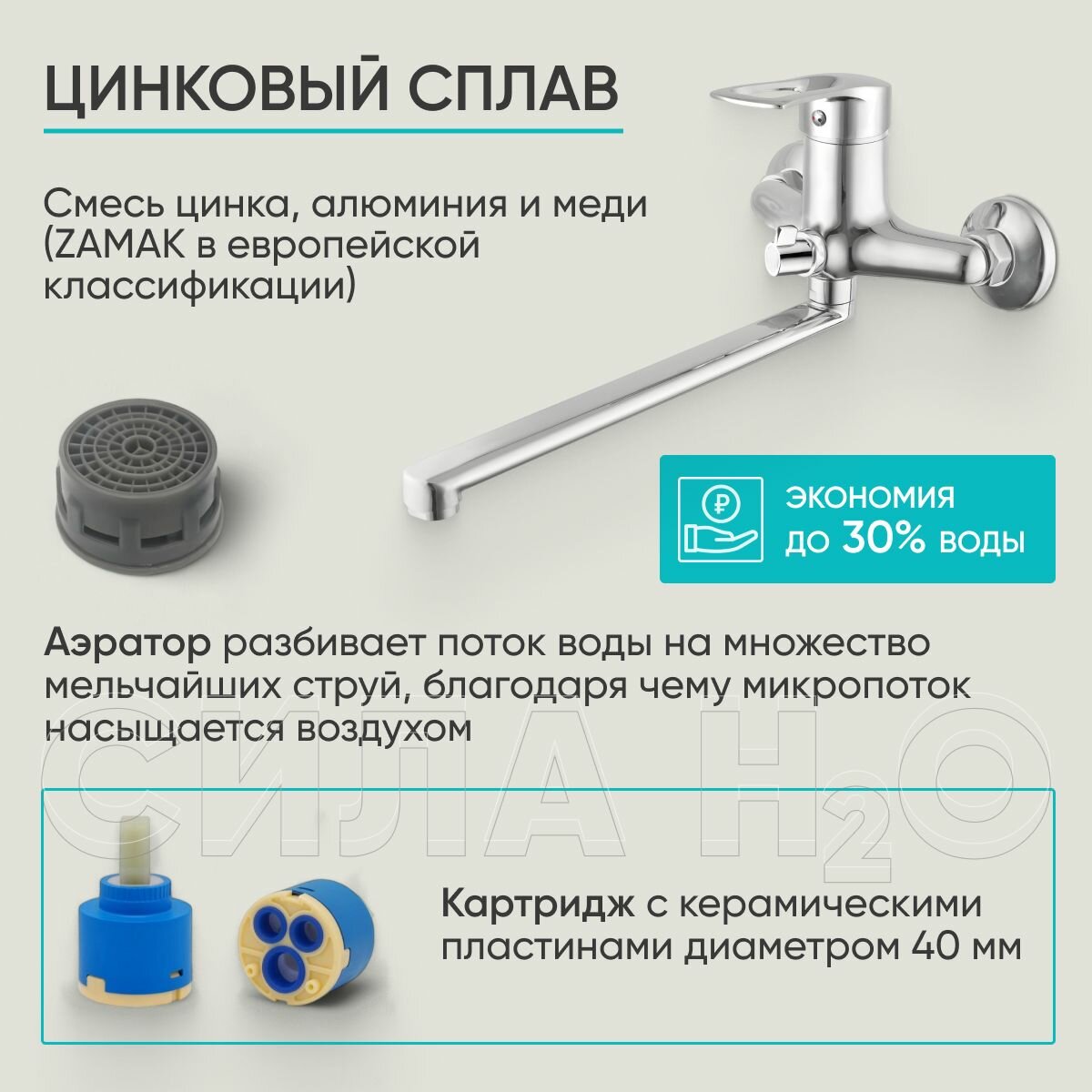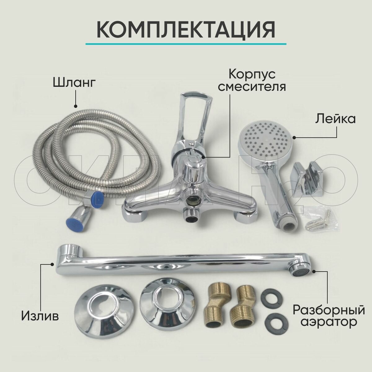 Смеситель для ванны BT-1017 с душем, длинный излив 30 см, цинковый сплав, хром